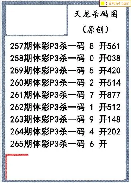 25年265期天龙体彩P3杀码图谜