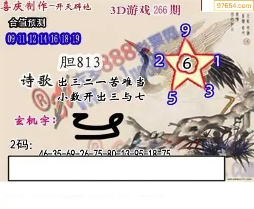 25266期福彩3D正版天宇和值谜