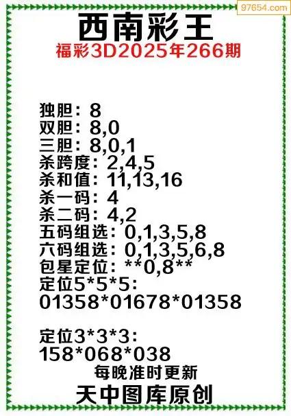 3d原创266期东北财神预测