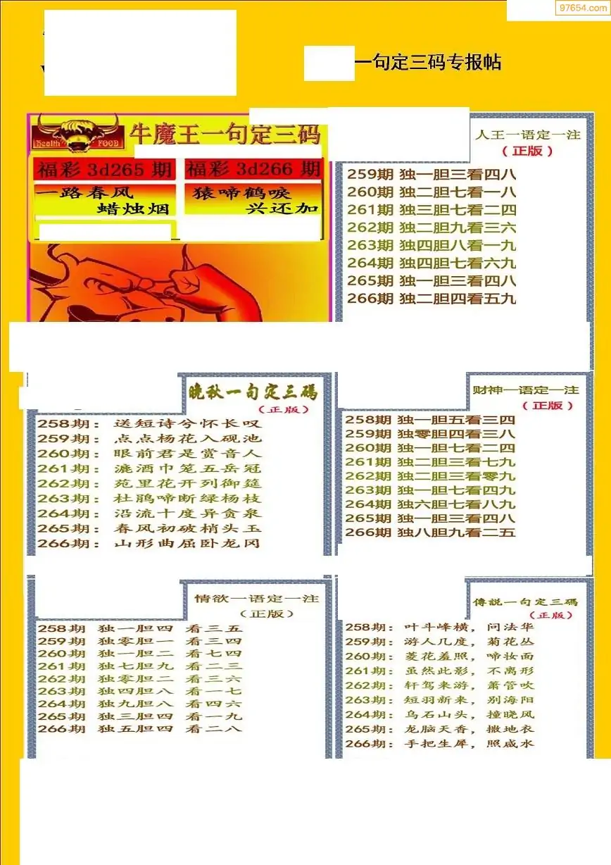 福彩3D266期天牛彩吧套图整合总汇