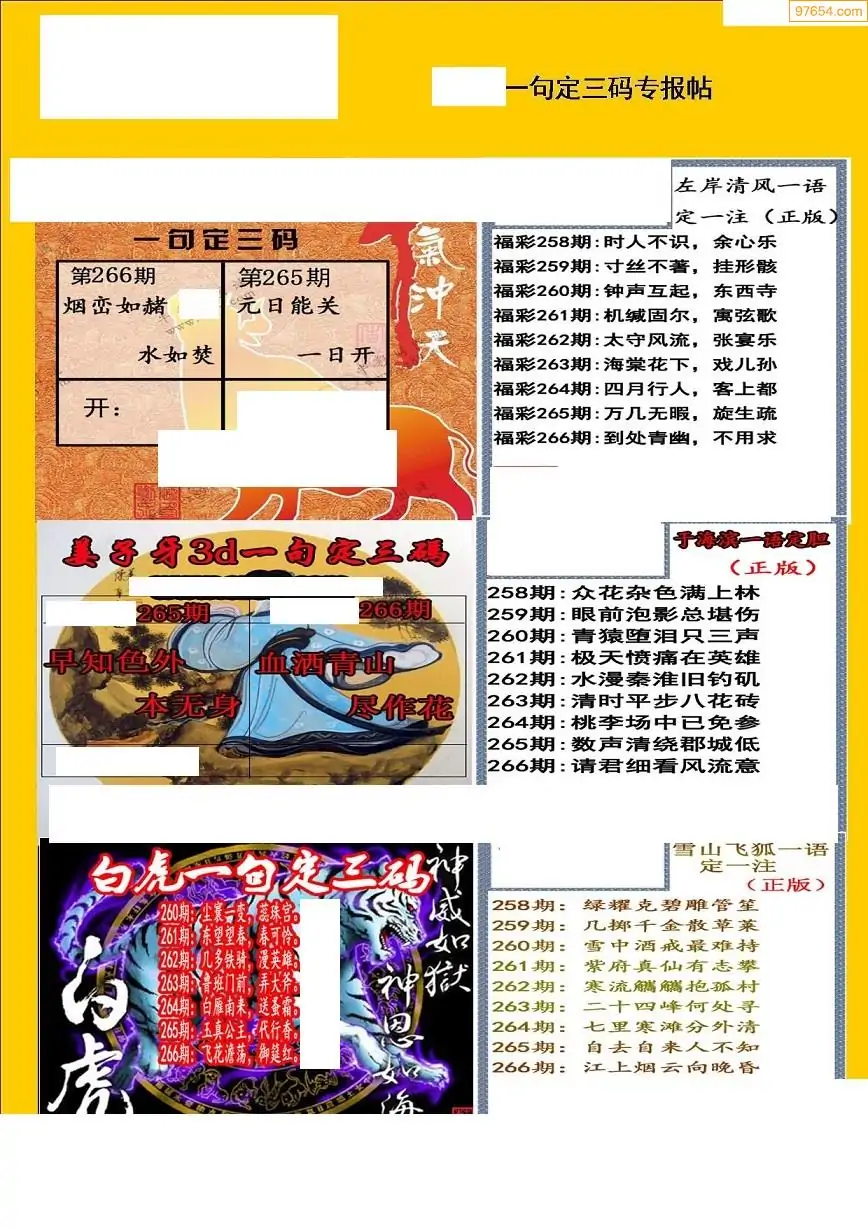 25266期天宇一句定三码3D图库