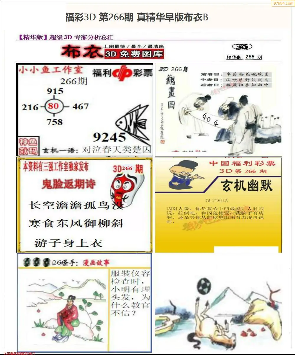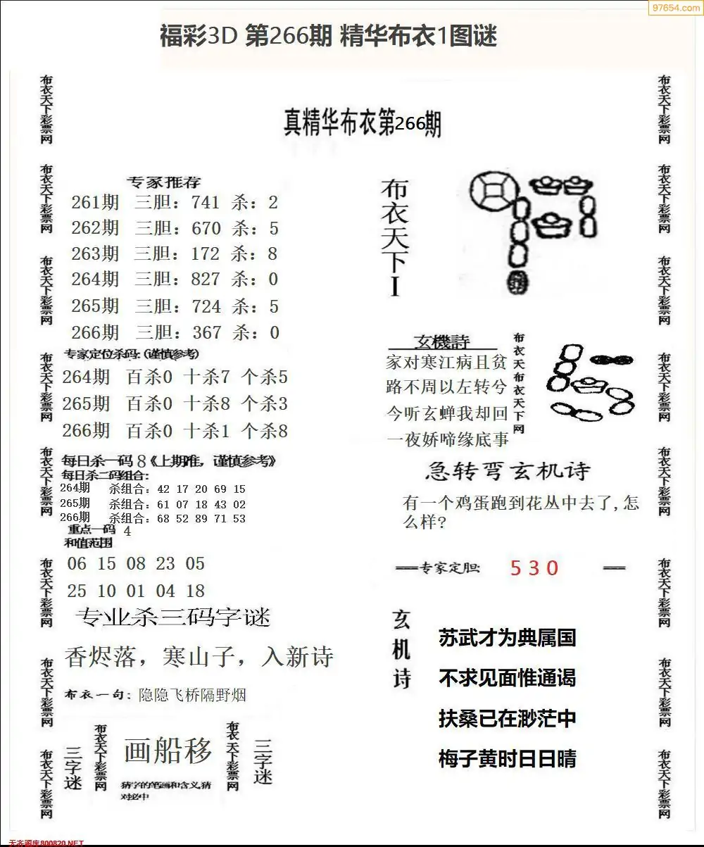 福彩266期3d真精华布衣+布衣早报(转载)