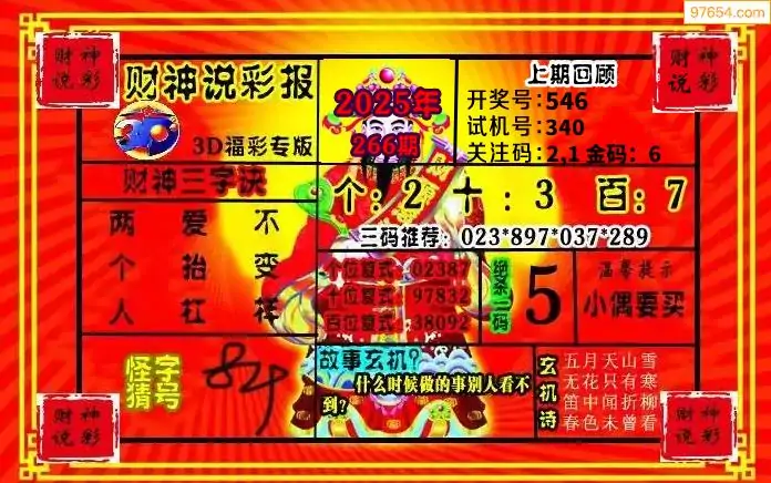 25年266期财神说彩3D综合图(原创)