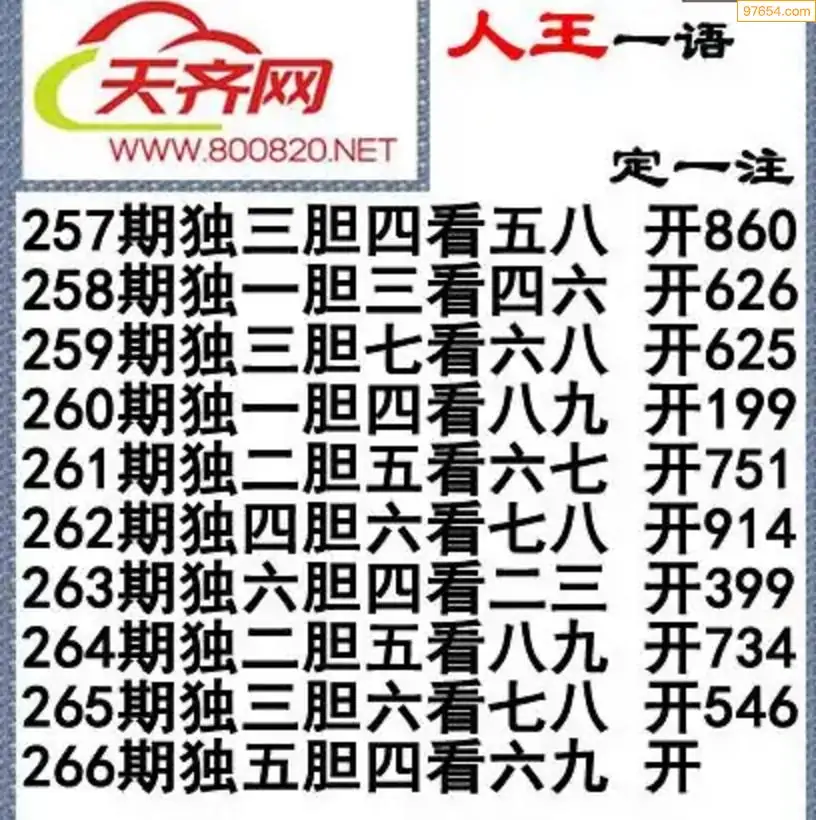 266期3D晚秋(乙种和值)谜:顺次下降 D:没有希望
