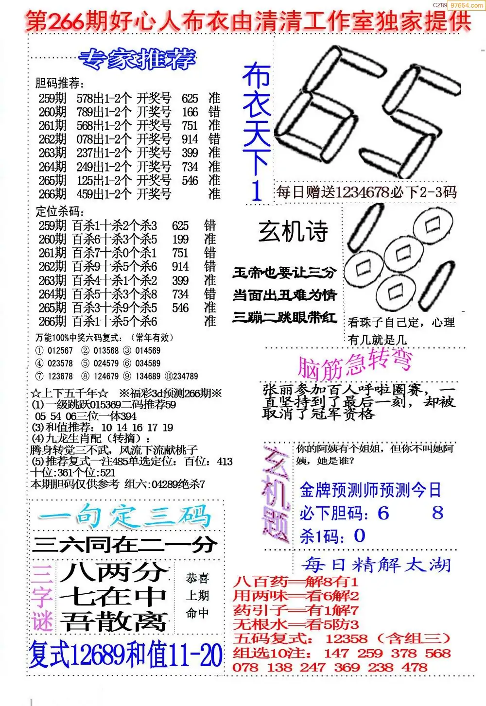 福彩266期3d真精华布衣+布衣早报(转载)