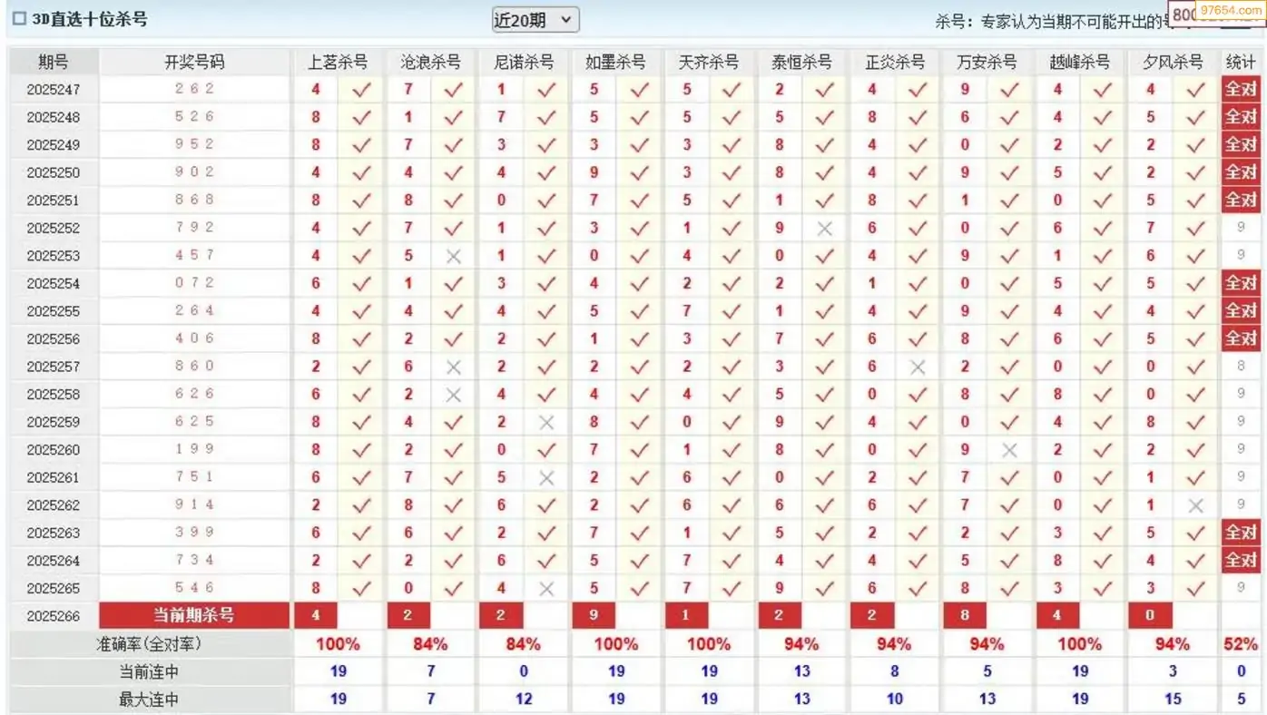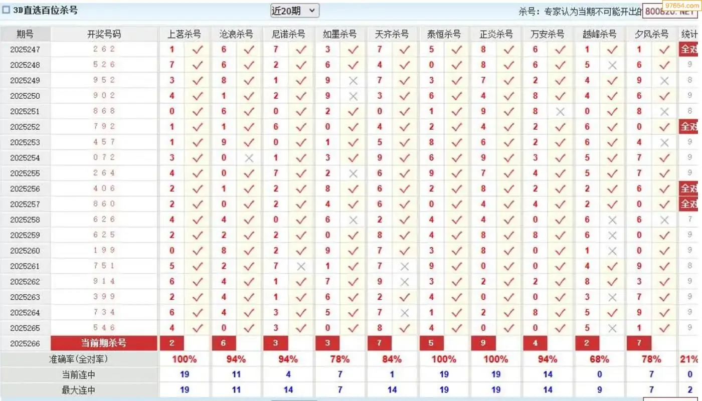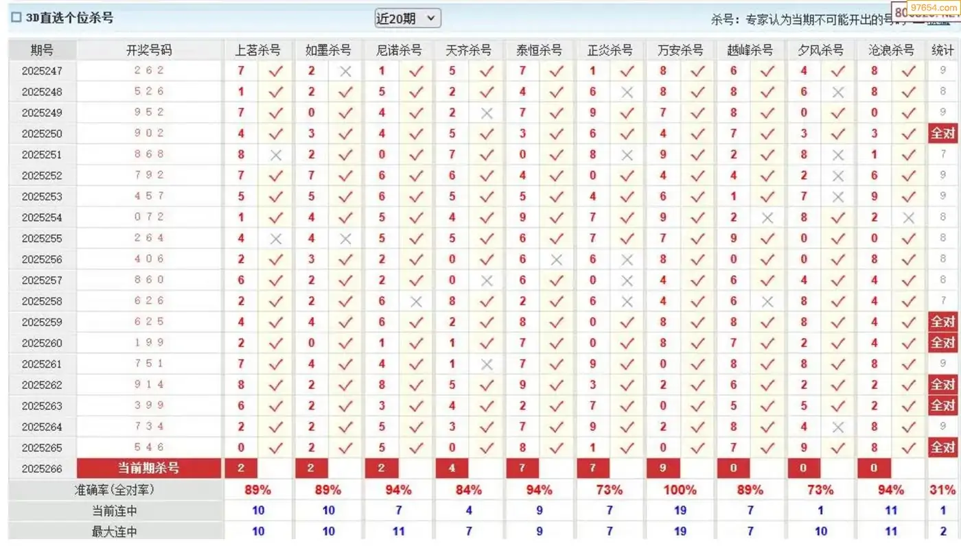 福彩3D25年266期非诚勿扰杀两号 7连中
