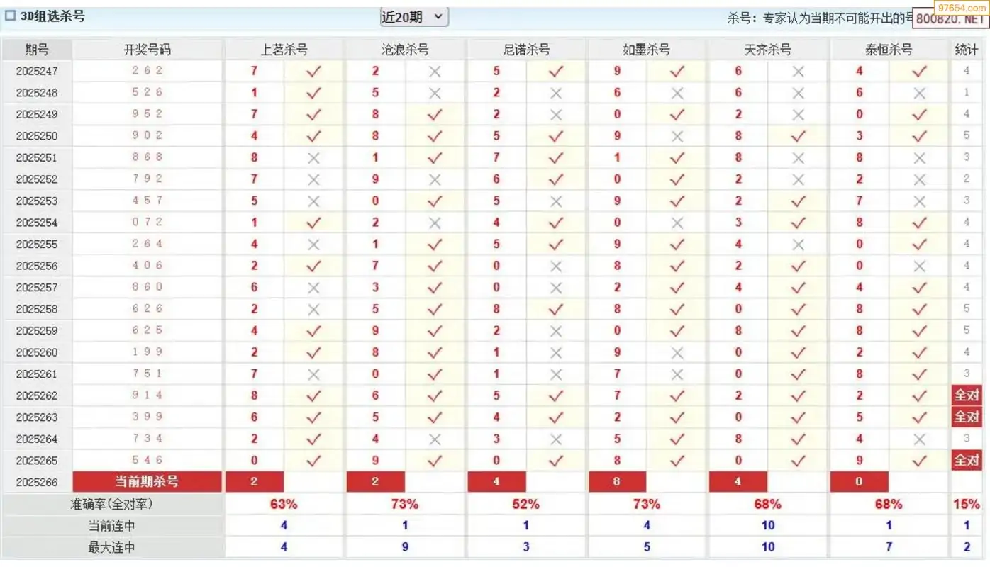 福彩3D25年266期非诚勿扰杀两号 7连中