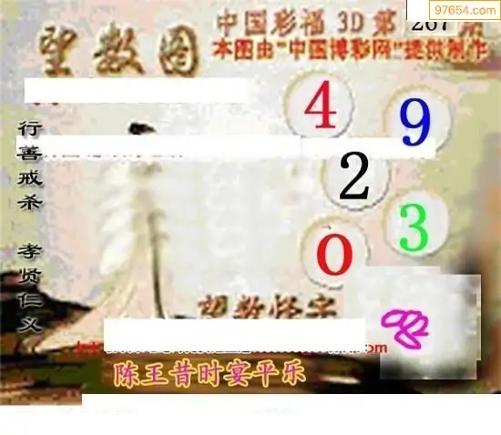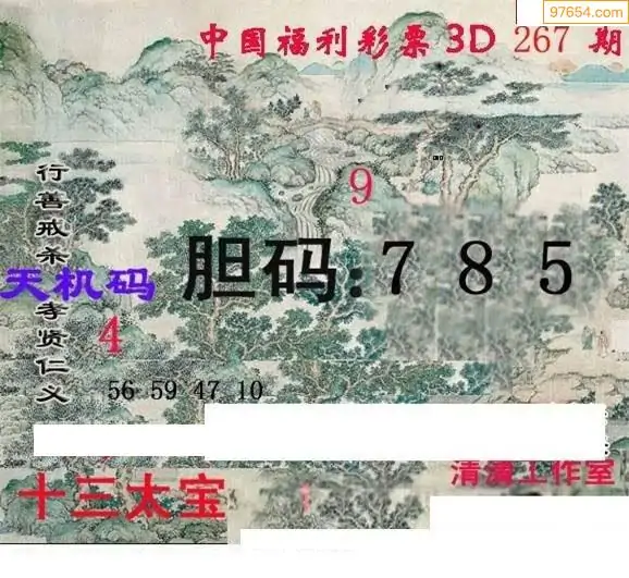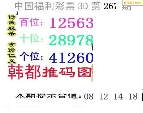 25267期福彩3D正版天宇和值谜