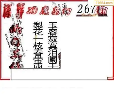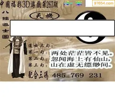 25267期福彩3D正版天宇和值谜