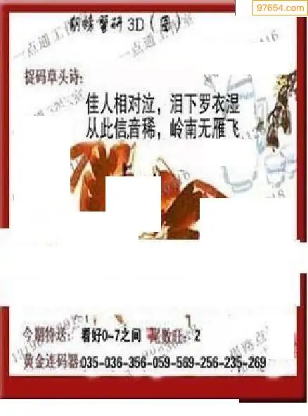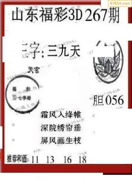 25267期福彩3D正版天宇和值谜