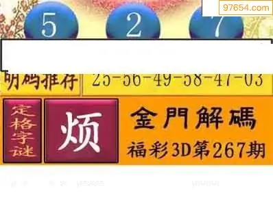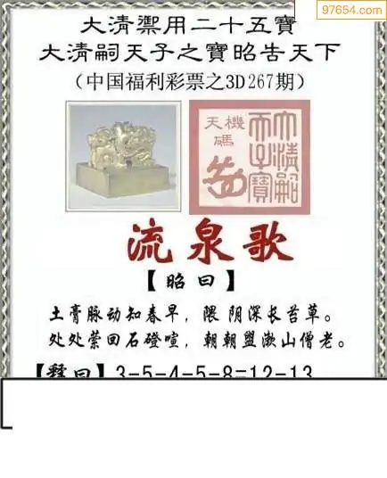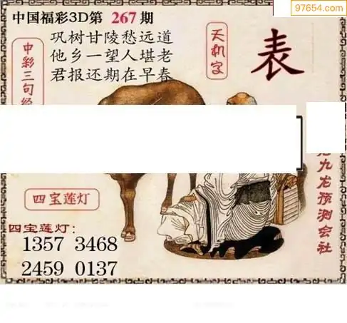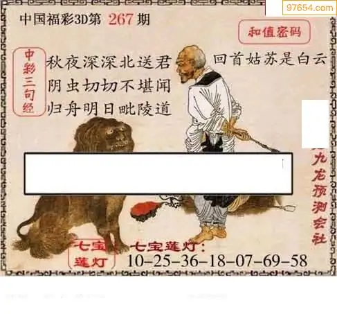 25267期福彩3D正版天宇和值谜