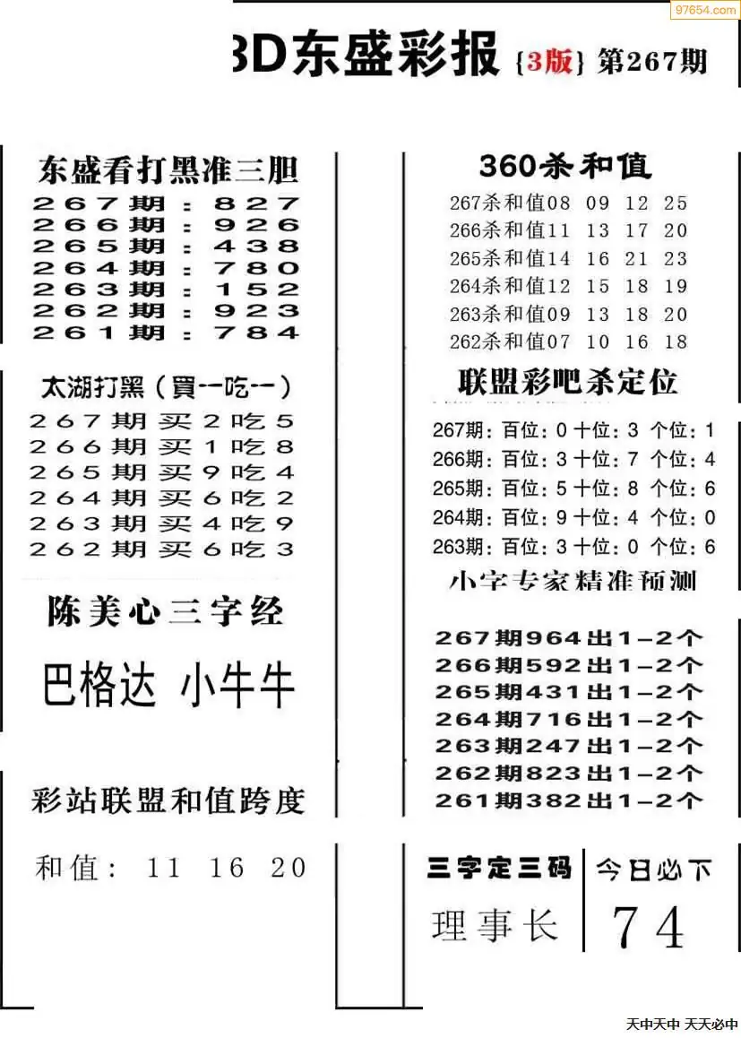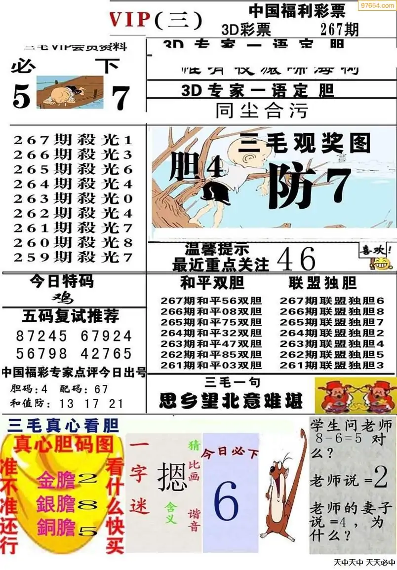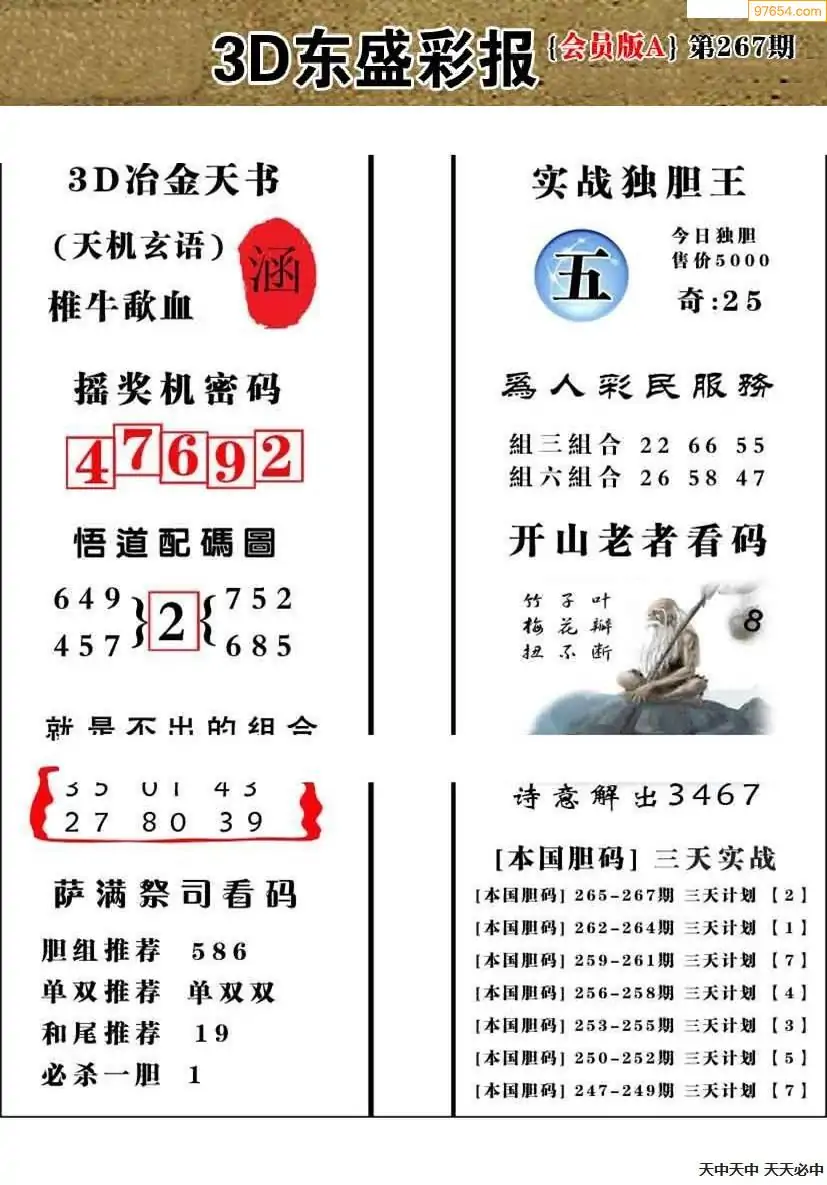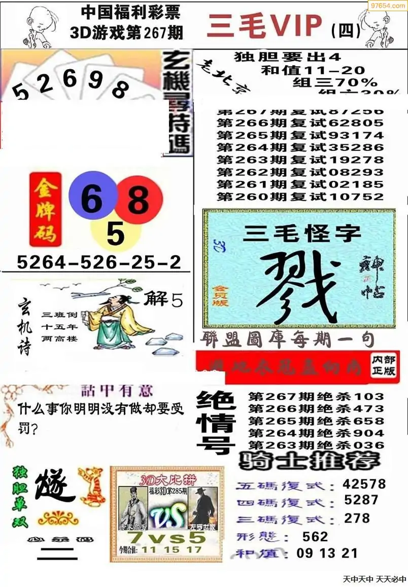 福彩3D267期天牛彩吧套图整合总汇