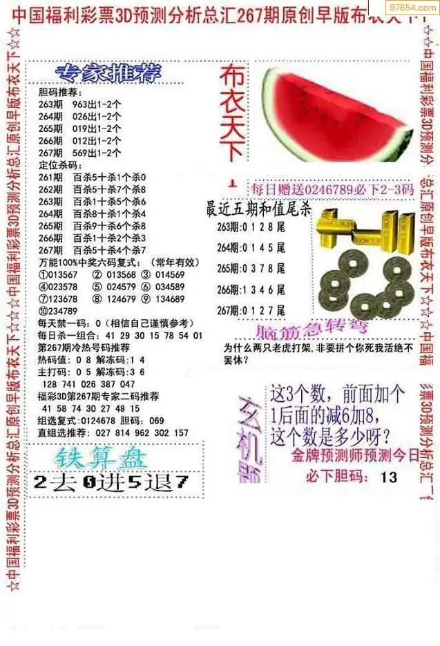 福彩267期3d真精华布衣+布衣早报(转载)