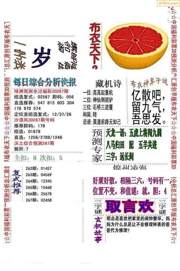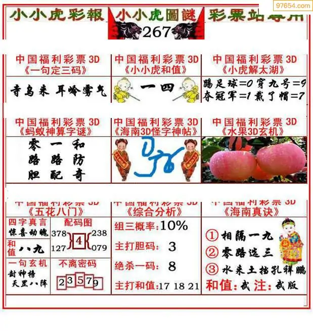 福彩3D267期天牛彩吧套图整合总汇