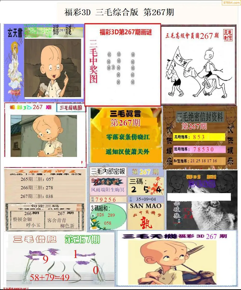 福彩3D267期天牛彩吧套图整合总汇