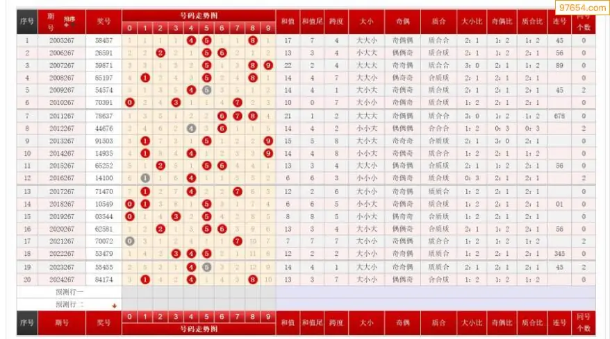 267期排列三历史号码对比图+数据走势分析