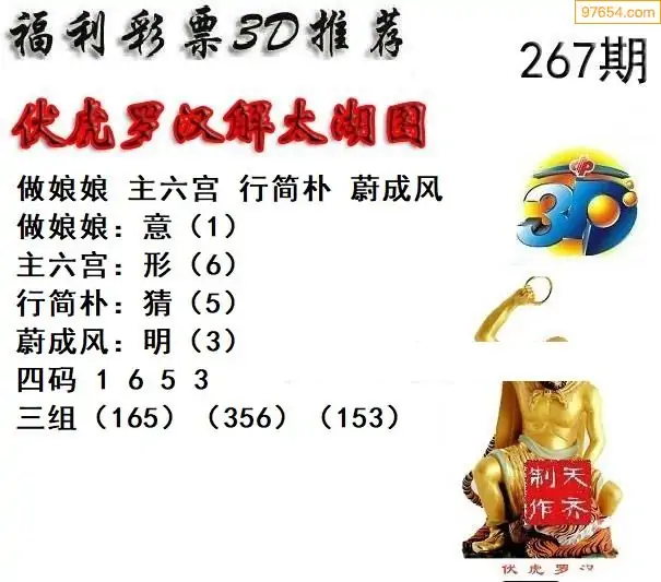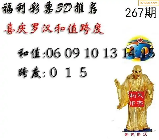 25267期福彩3D正版天宇和值谜