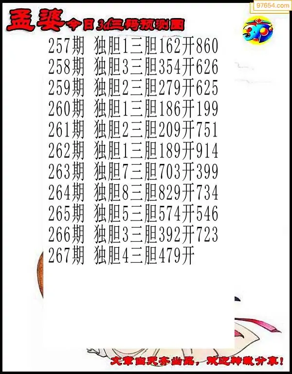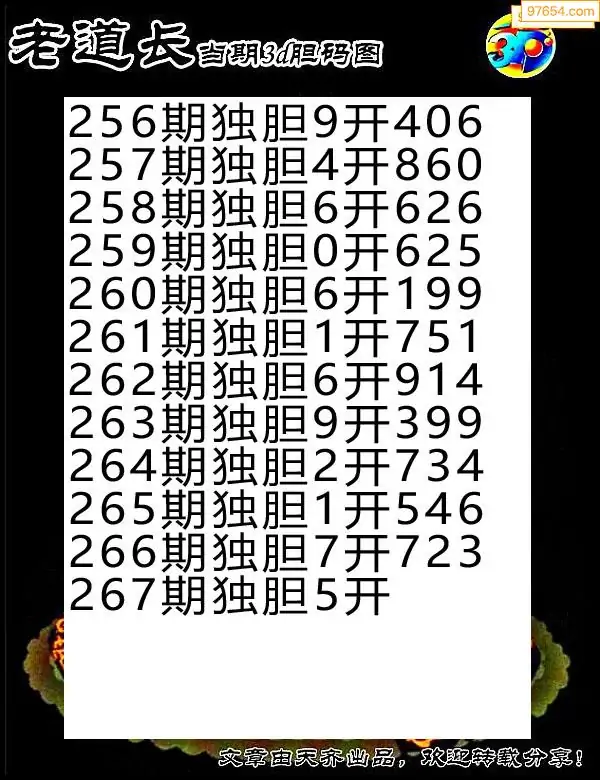 2025267期彩彩网3d原创图迷搜集(天中整理)