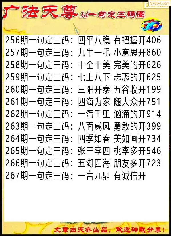 267期97654本站收集胆码出号预测