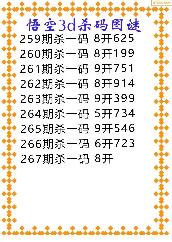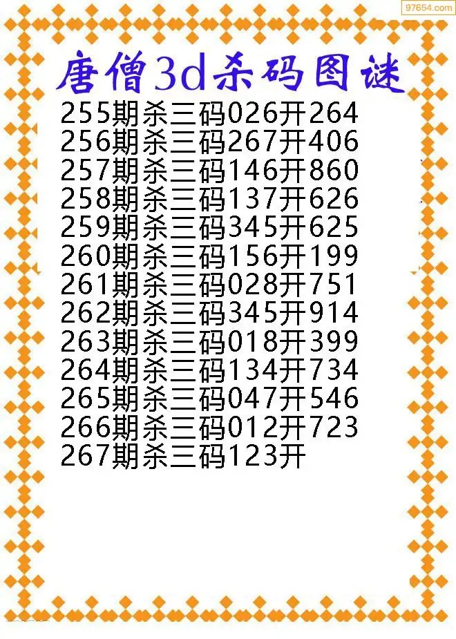 2025267期彩彩网3d原创图迷搜集(天中整理)