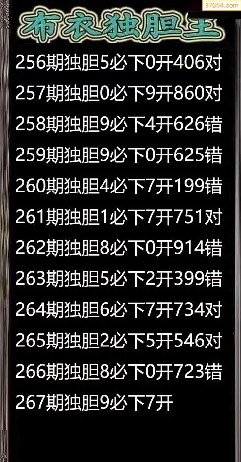 267期97654本站收集胆码出号预测