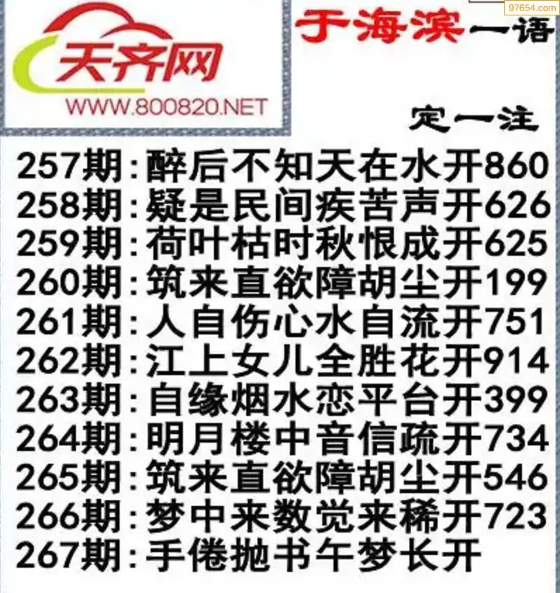 于海滨福彩3D25267期一语定一注