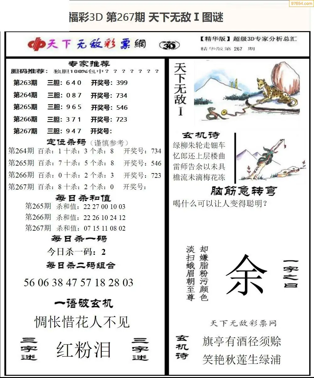 25年267期3d选号彩报图谜画谜