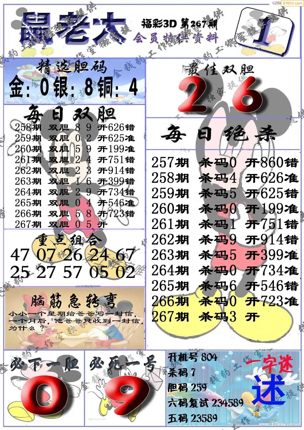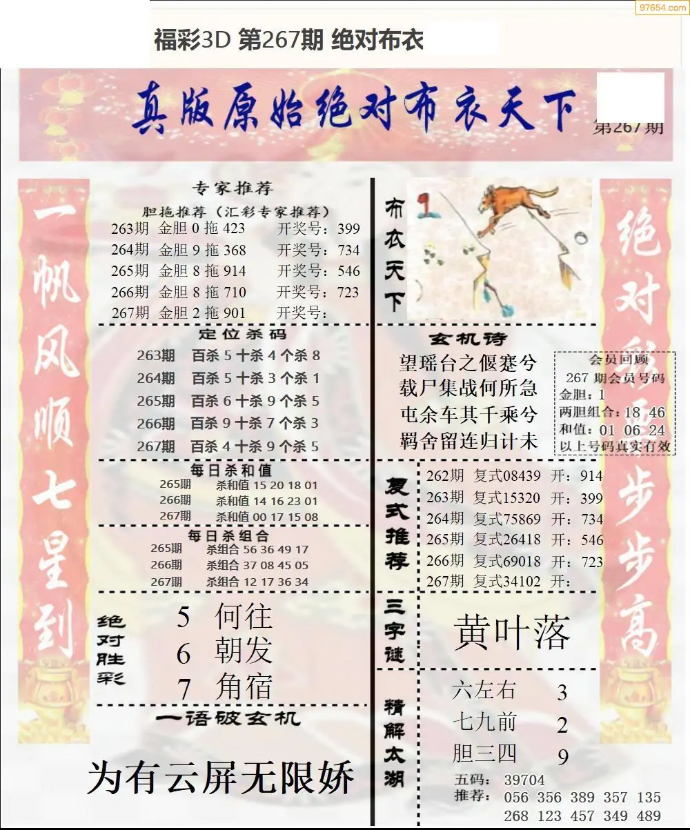 福彩3D267期天牛彩吧套图整合总汇