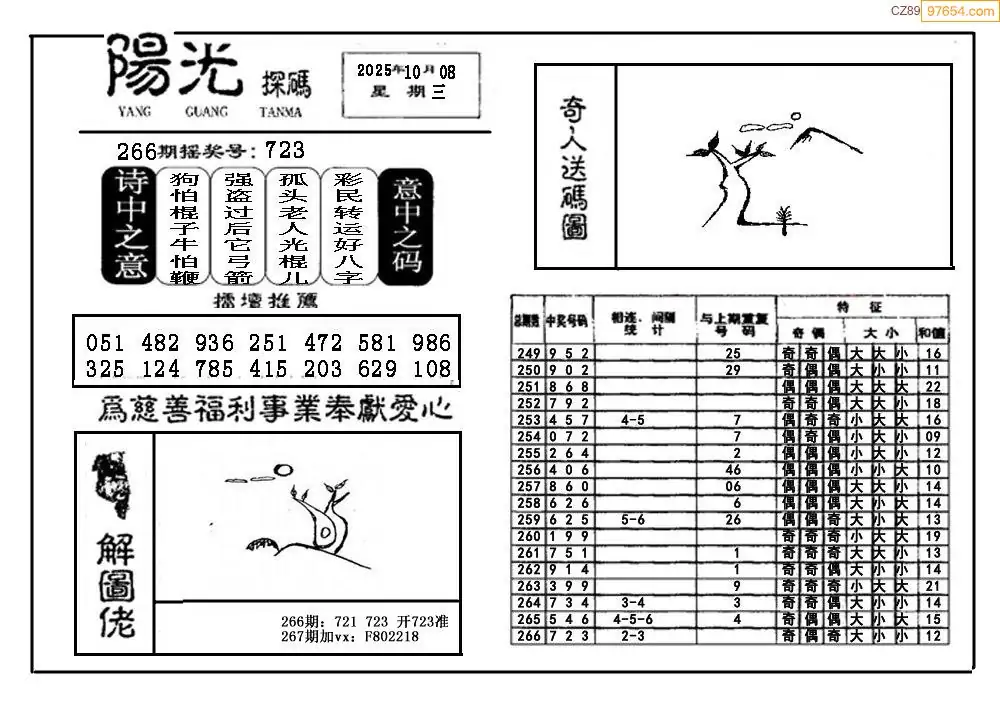 25267期福彩3D阳光探码图
