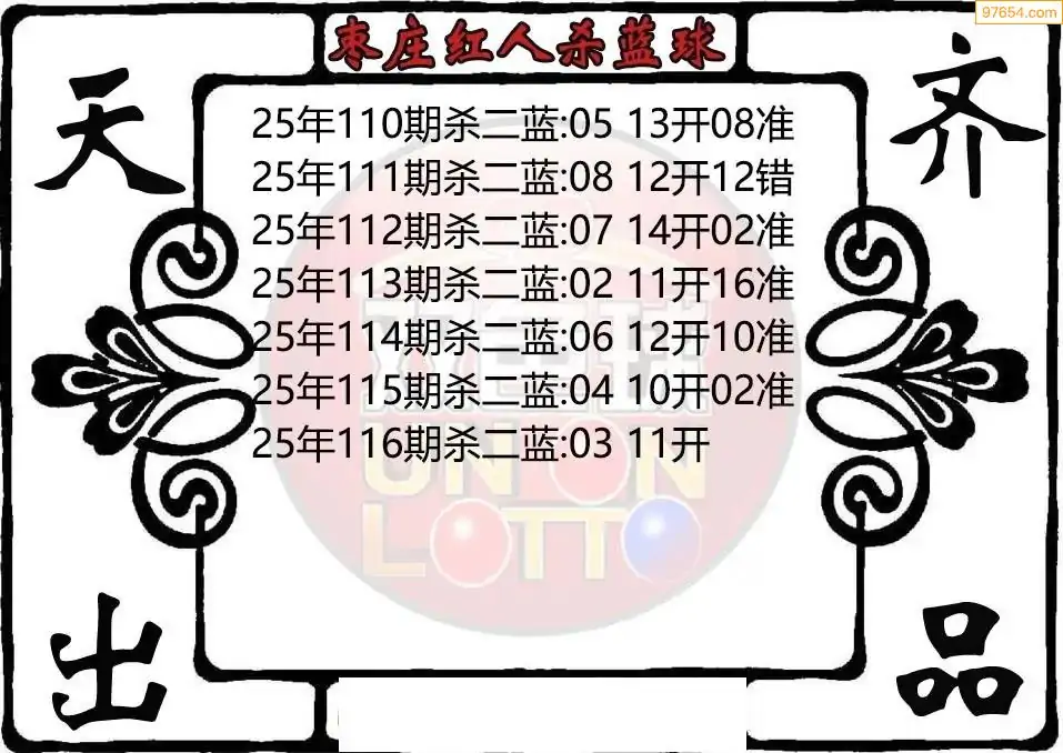 25年双色球116期枣庄红人杀二蓝图迷
