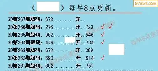 267期97654本站收集胆码出号预测