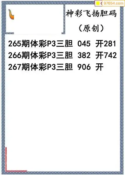 25267期神彩飞扬体彩P3三胆图谜
