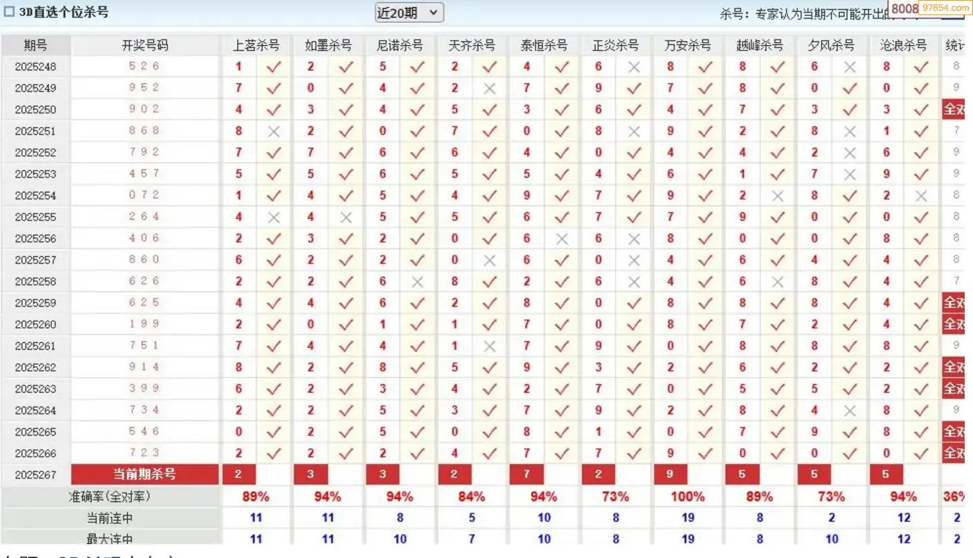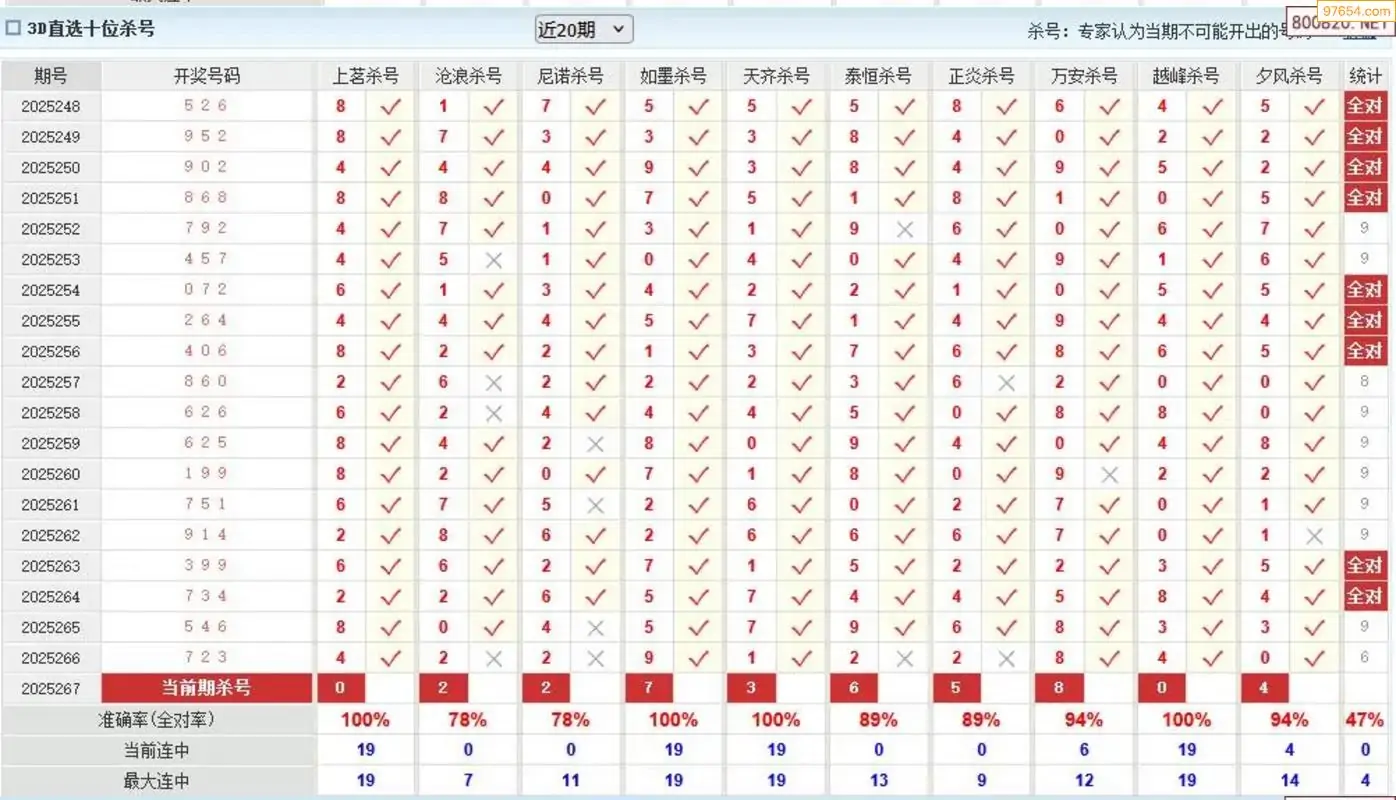 杀号王今晚3d杀一号码267期 8连中