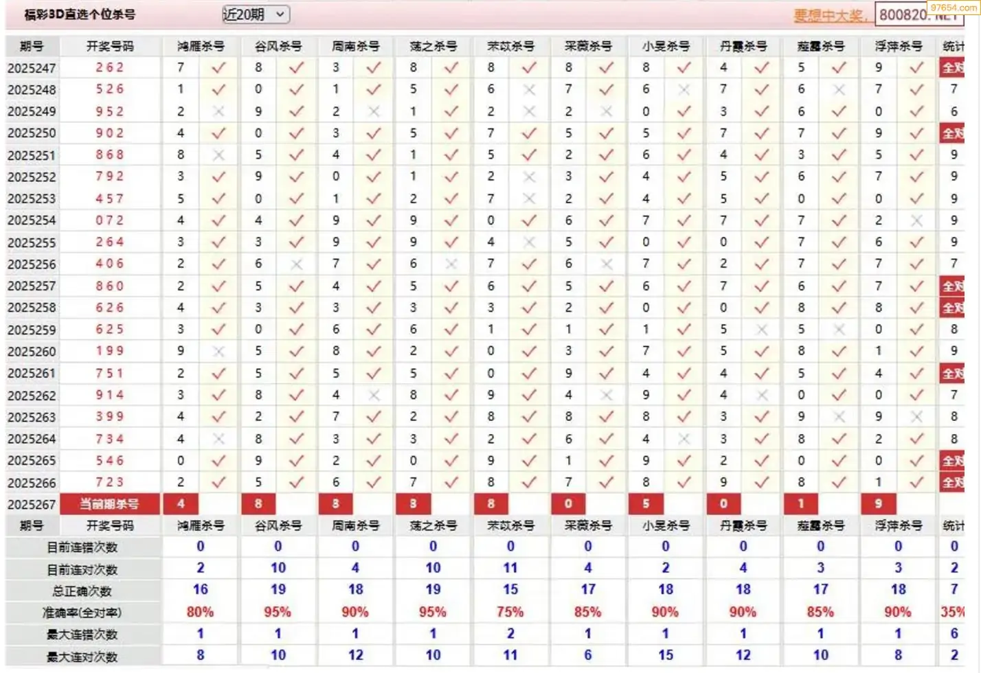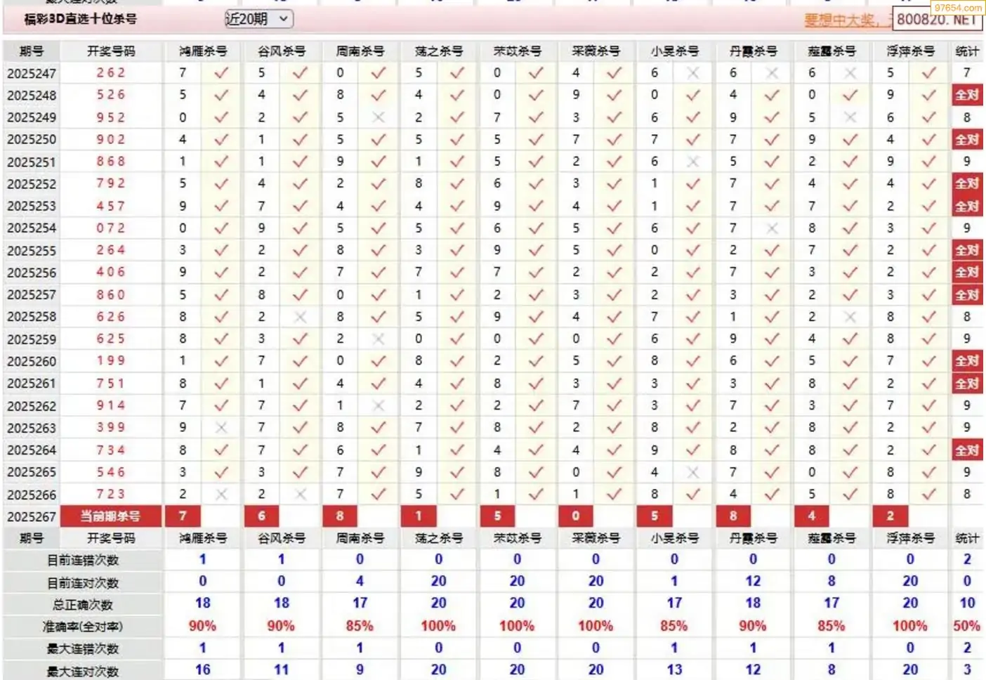 福彩3D25年267期非诚勿扰杀两号 8连中