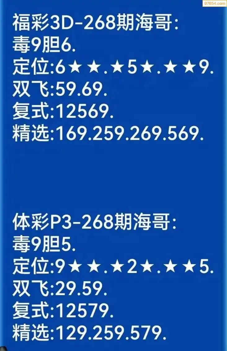 2025年268期普度众生今晚3D推荐胆码 6连中