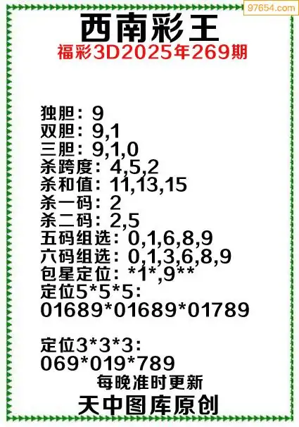 2025269期彩彩网3d原创图迷搜集(天中整理)
