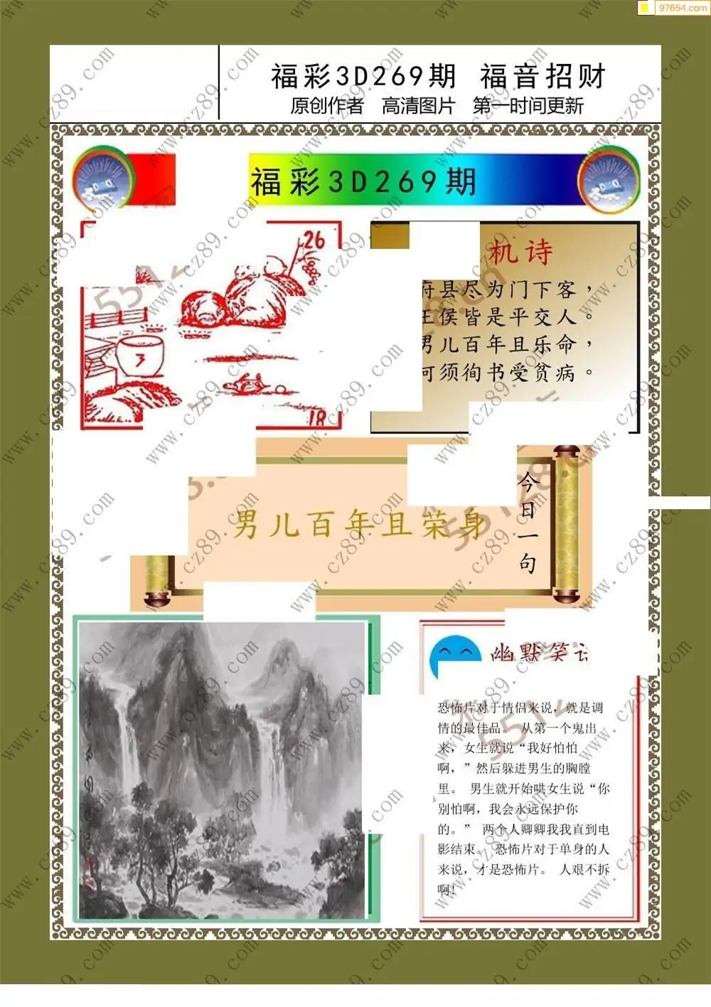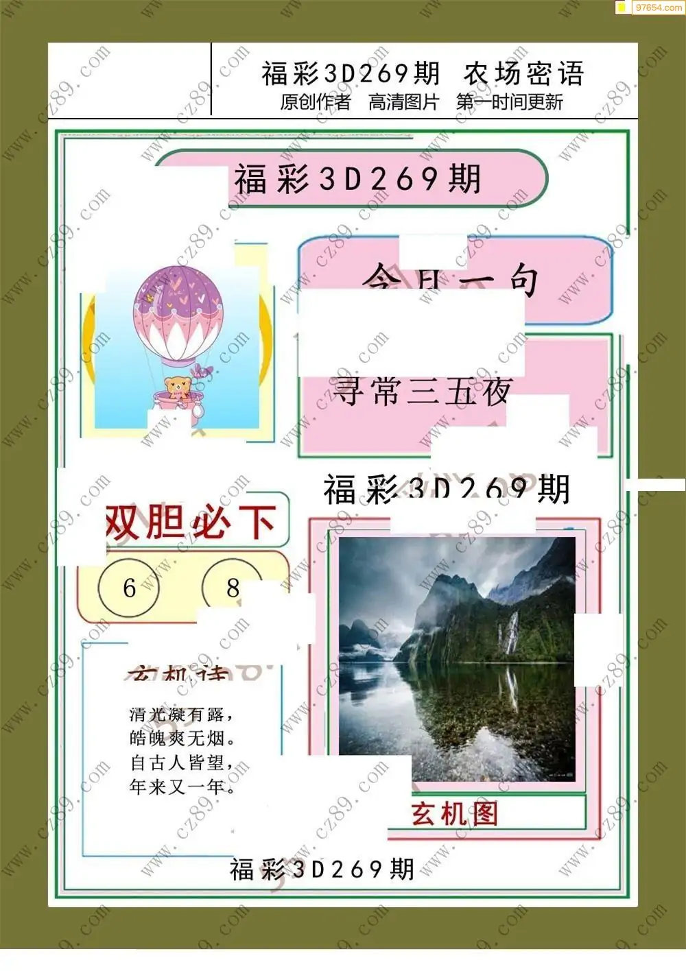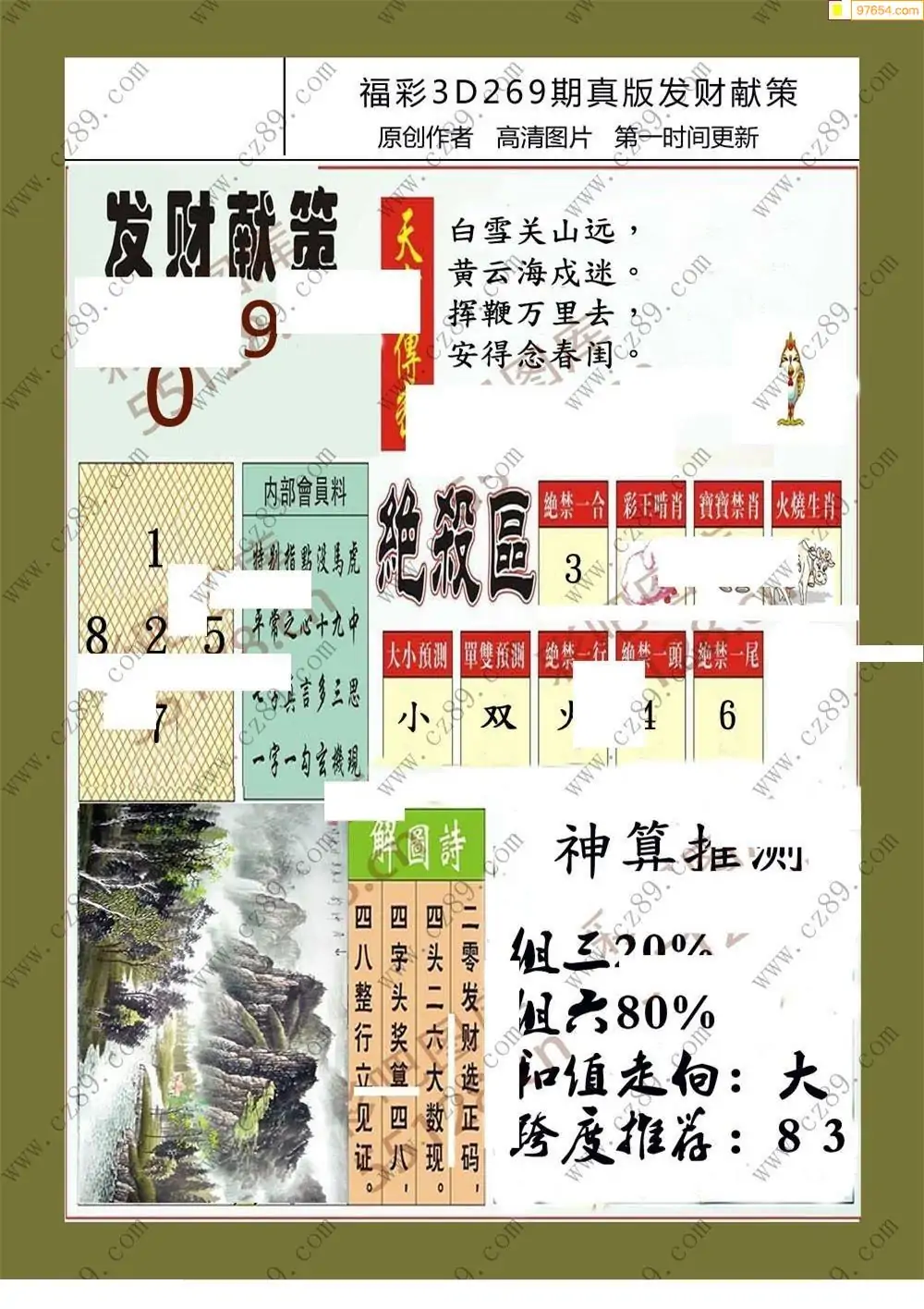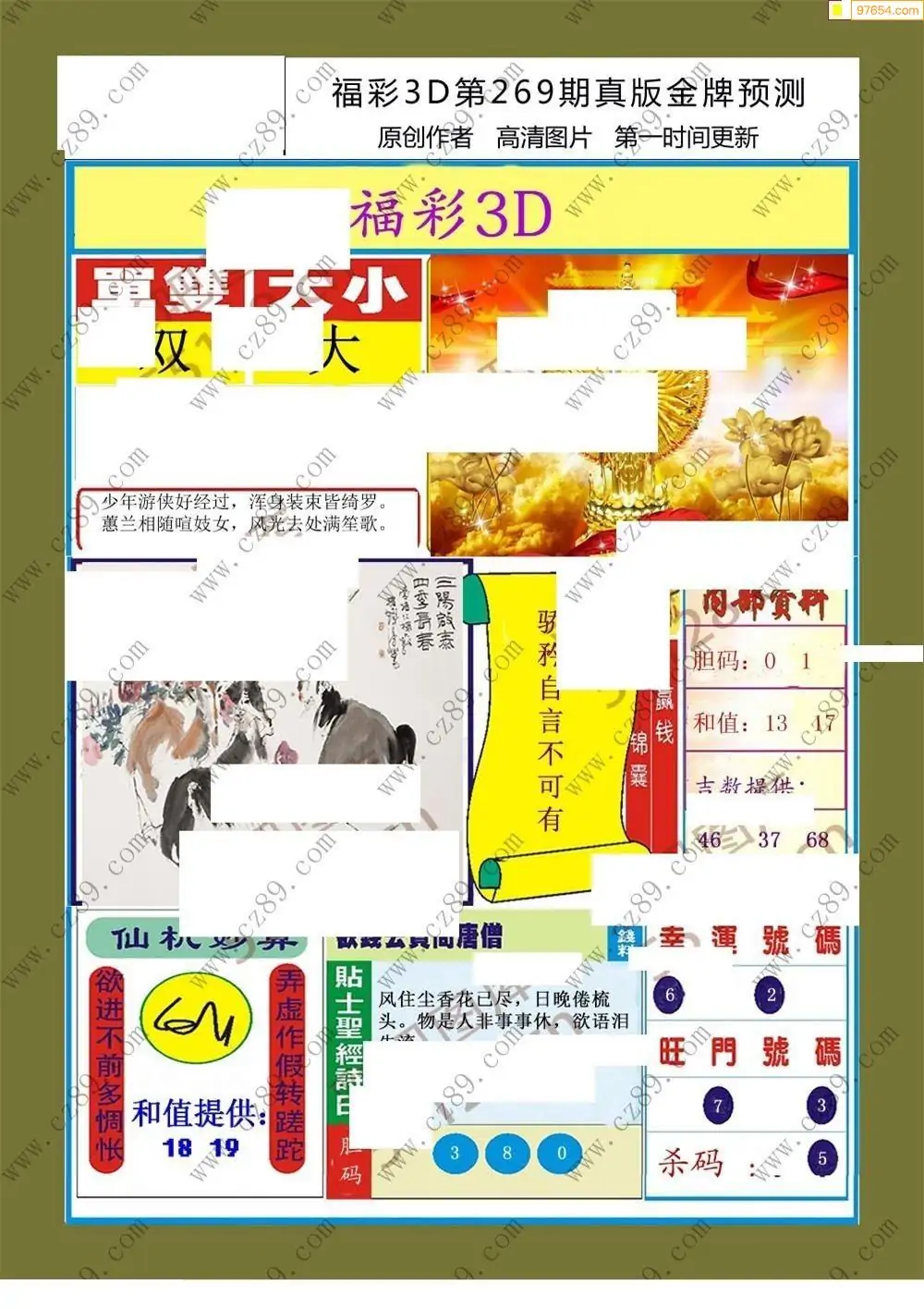 福彩3D269期天牛彩吧套图整合总汇