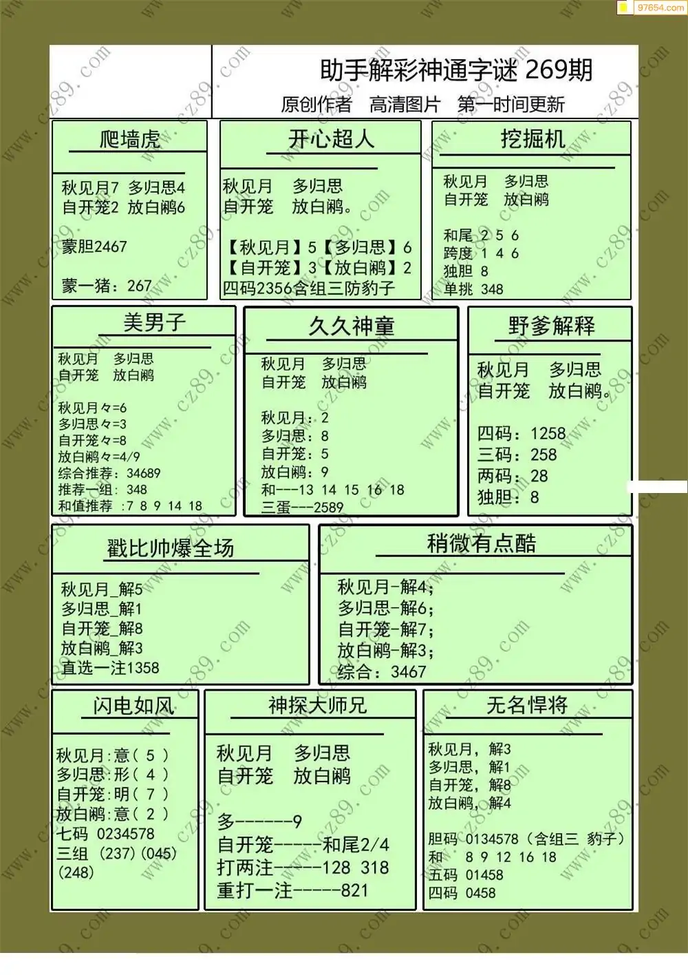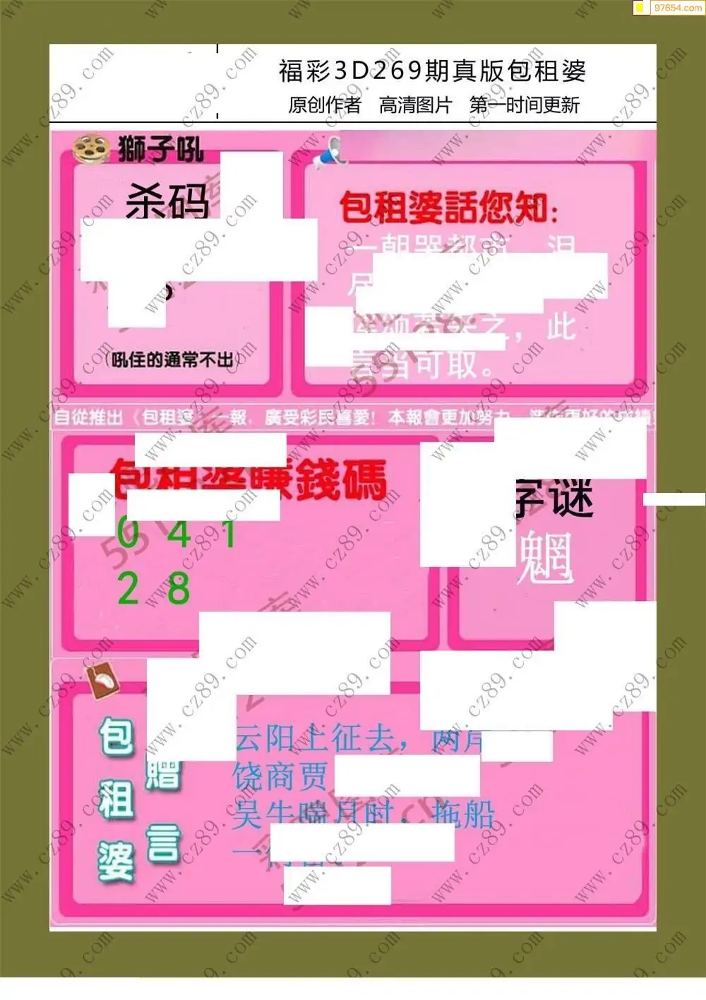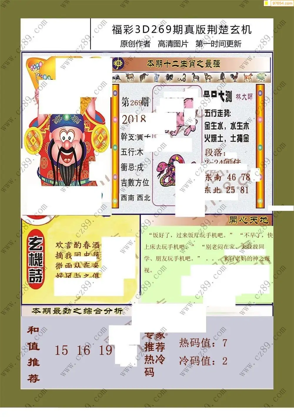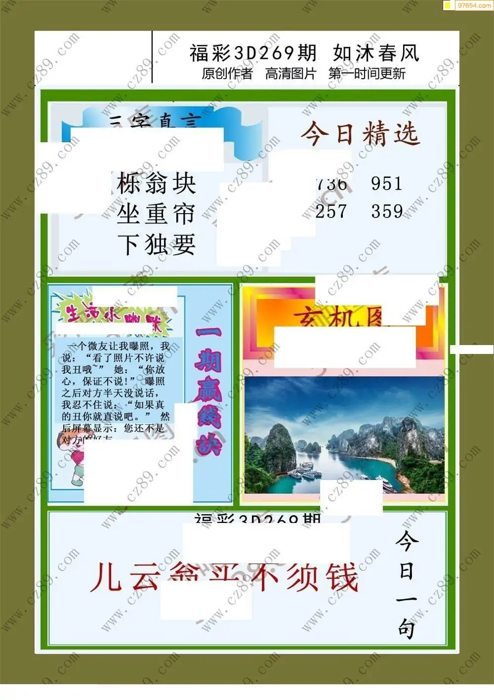 福彩3D269期天牛彩吧套图整合总汇