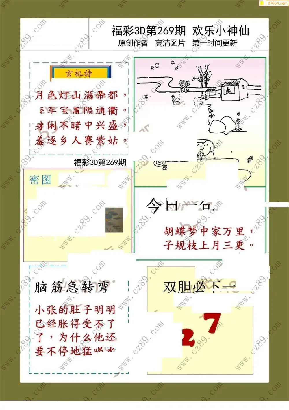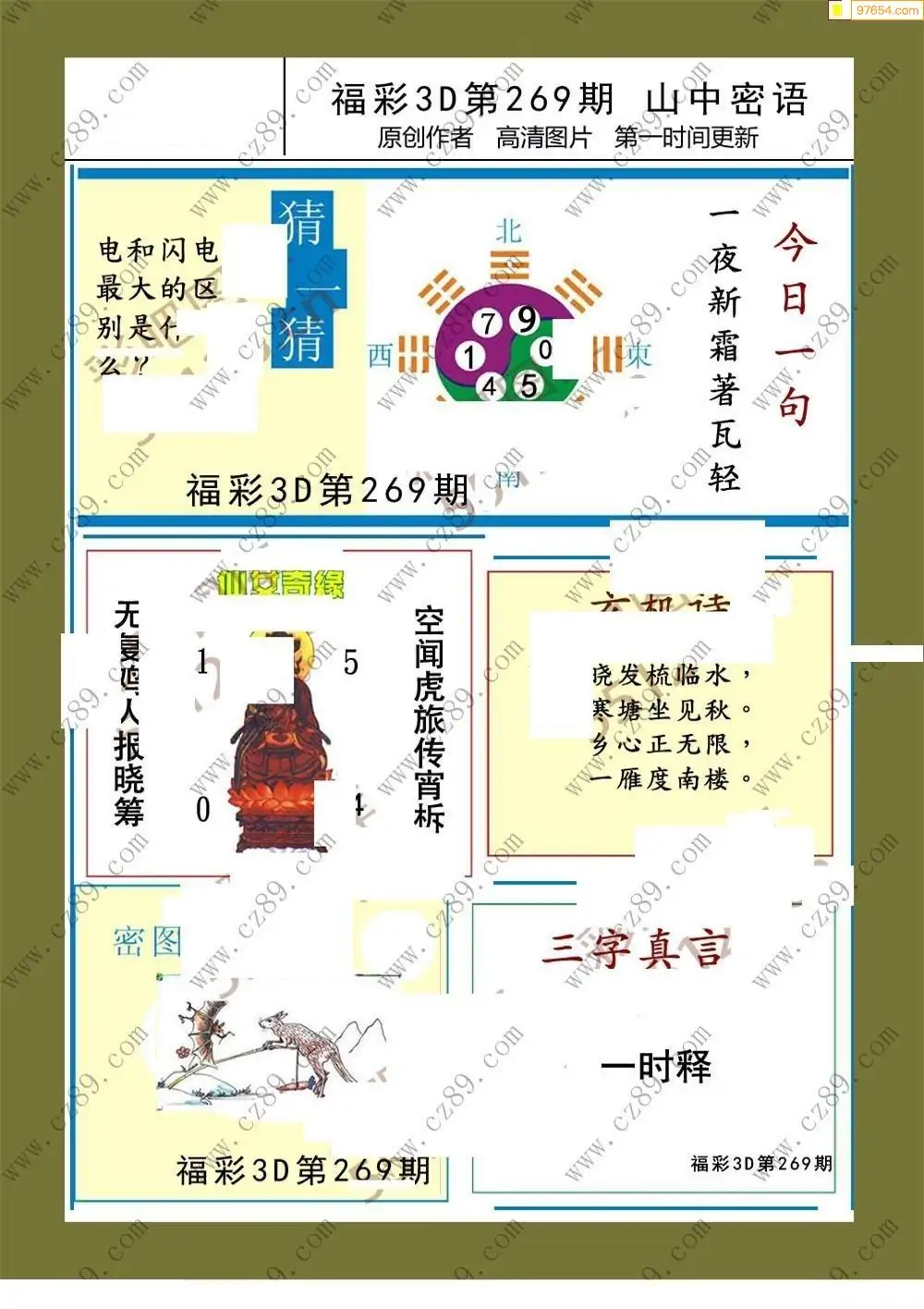 福彩3D25269期蓝仙子一句定三码图谜