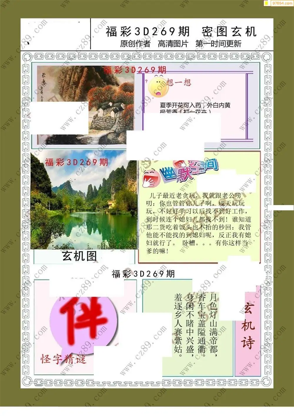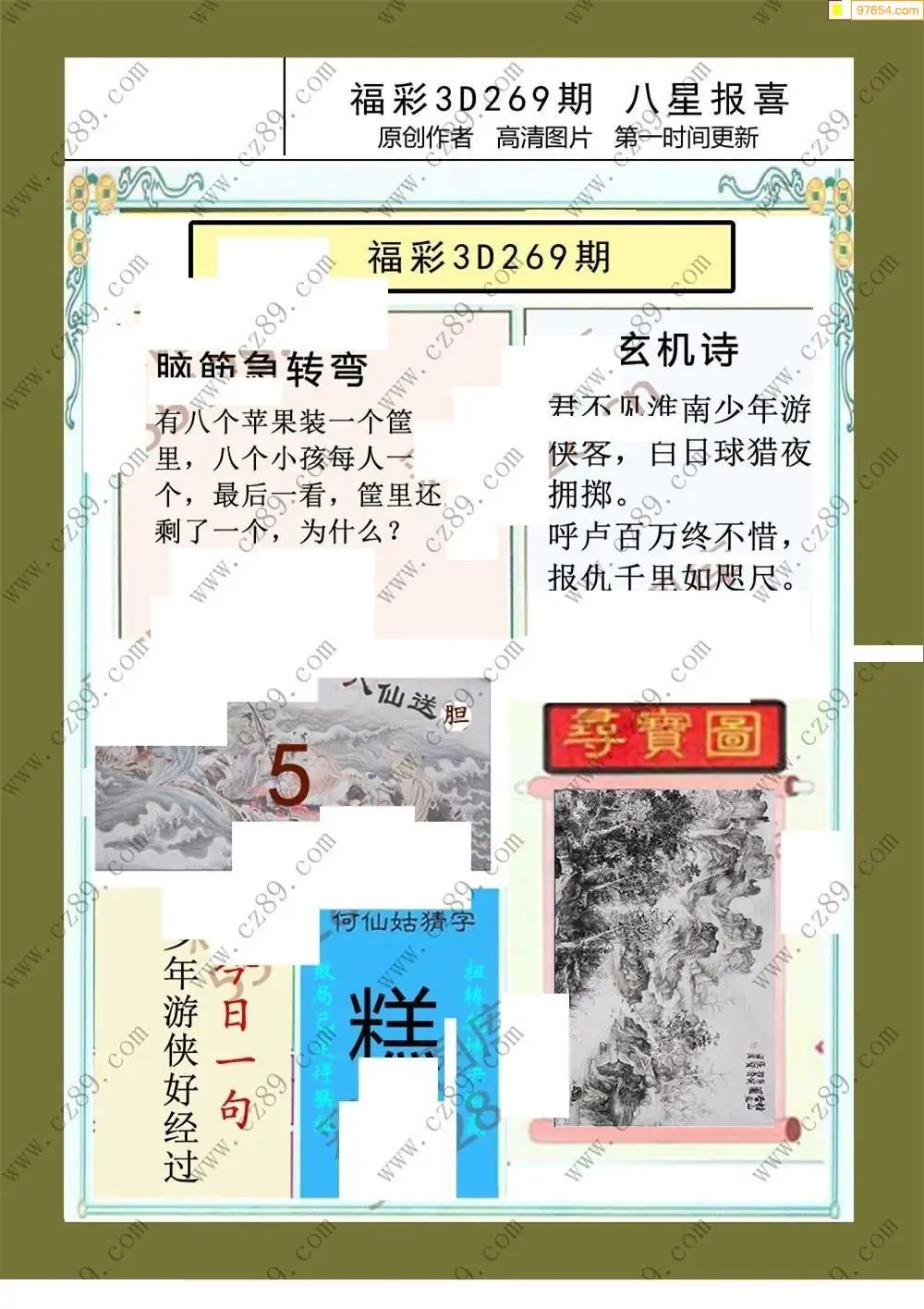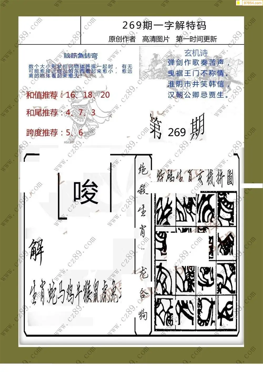 269期福彩天机壁怪字图