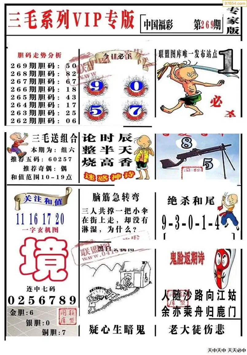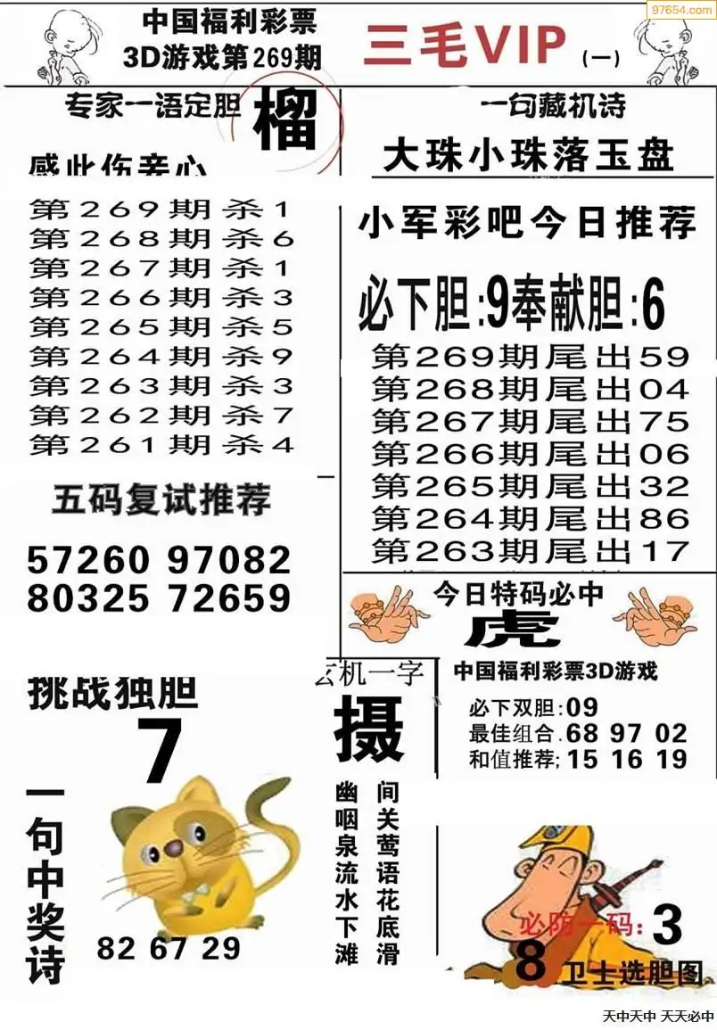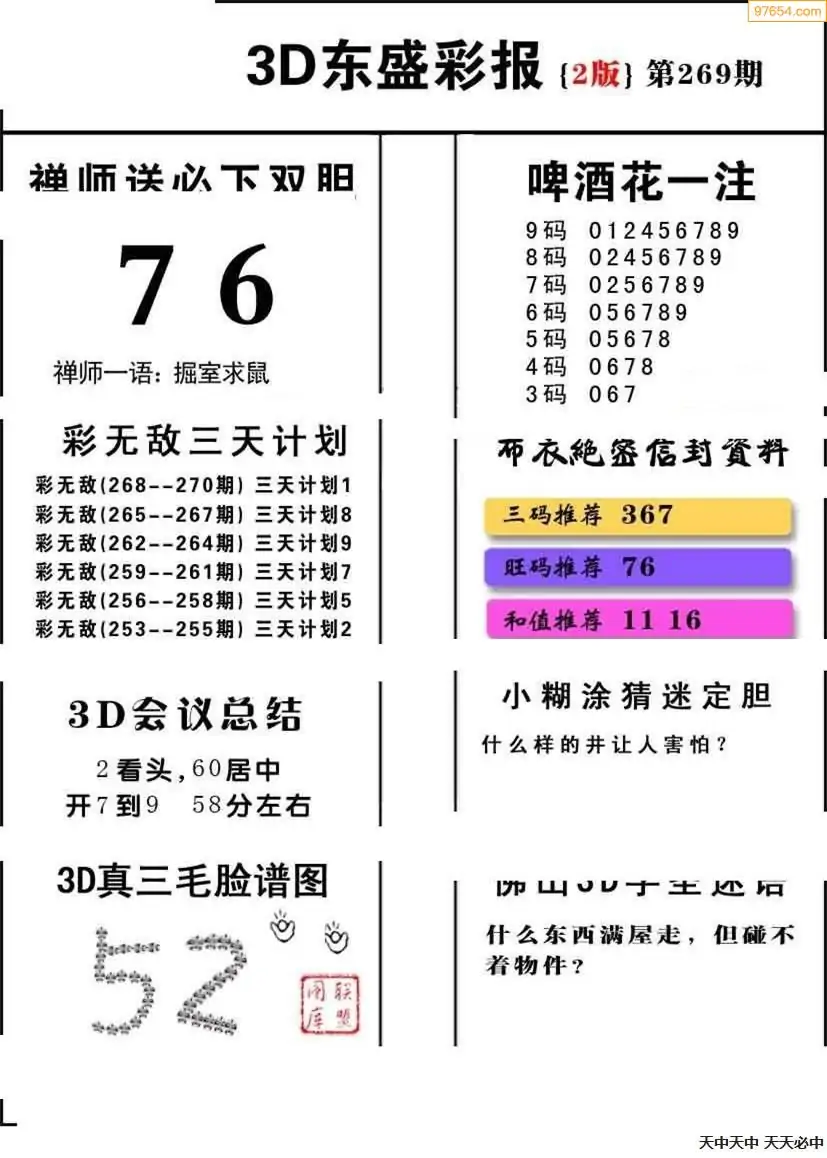 福彩3D269期天牛彩吧套图整合总汇
