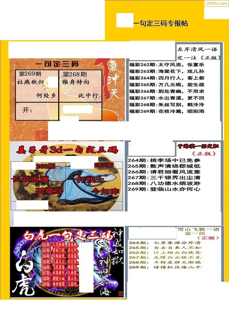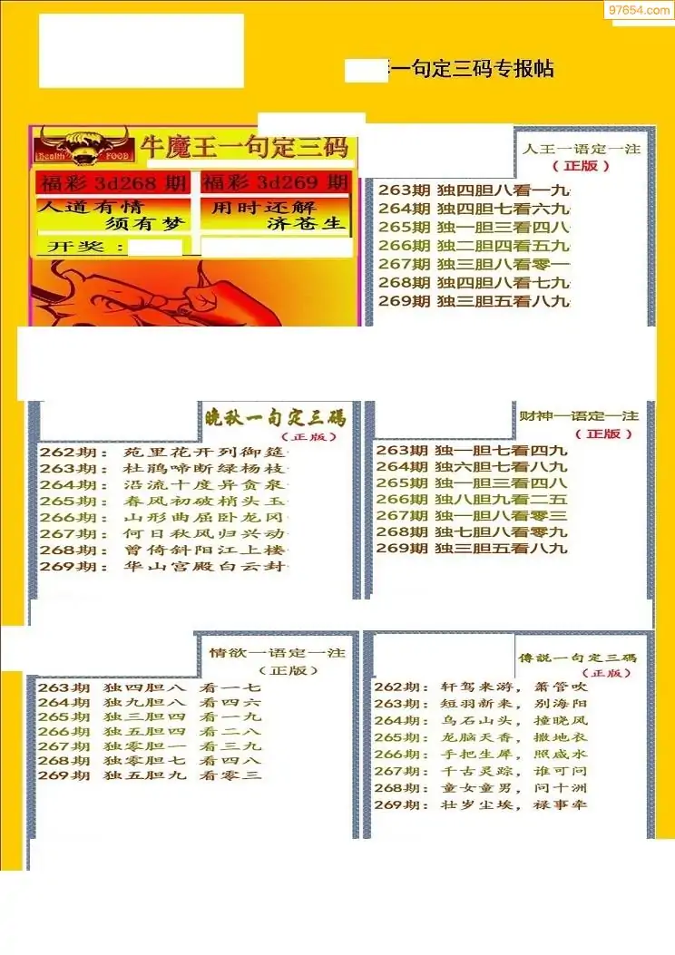 福彩3D269期天牛彩吧套图整合总汇