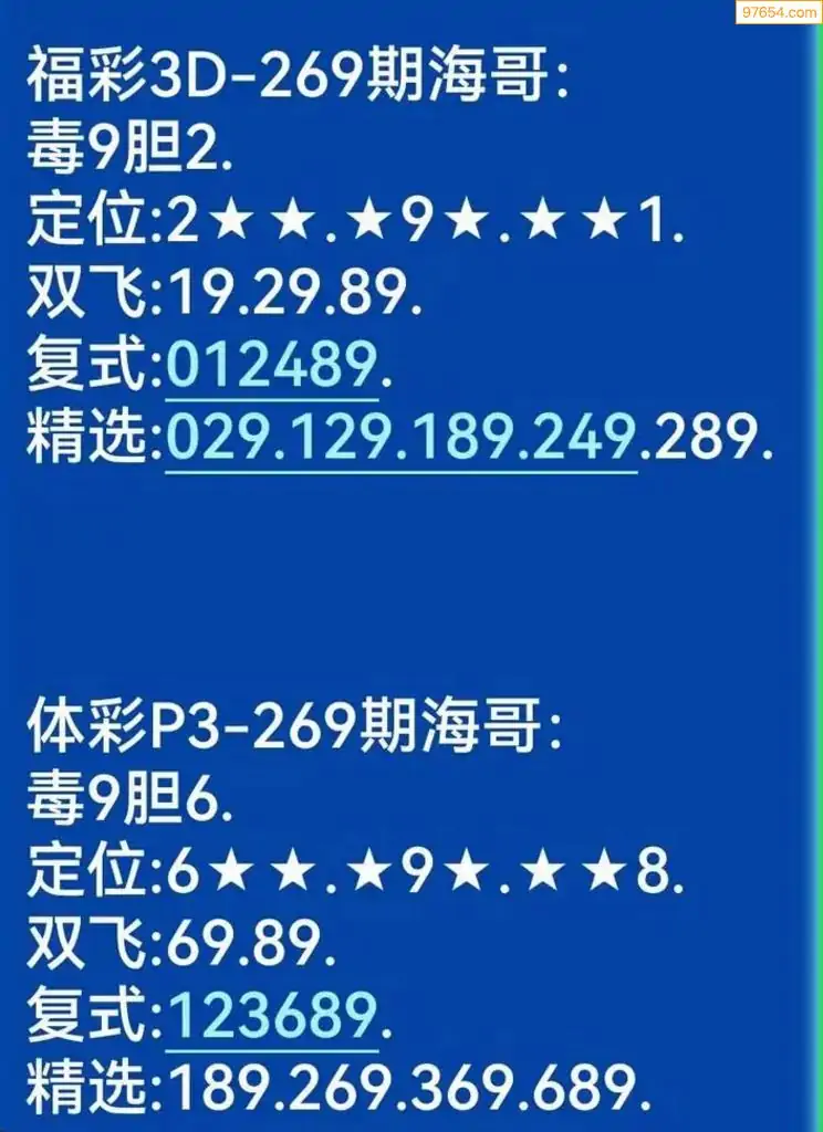 海哥福彩269期3d今日双胆