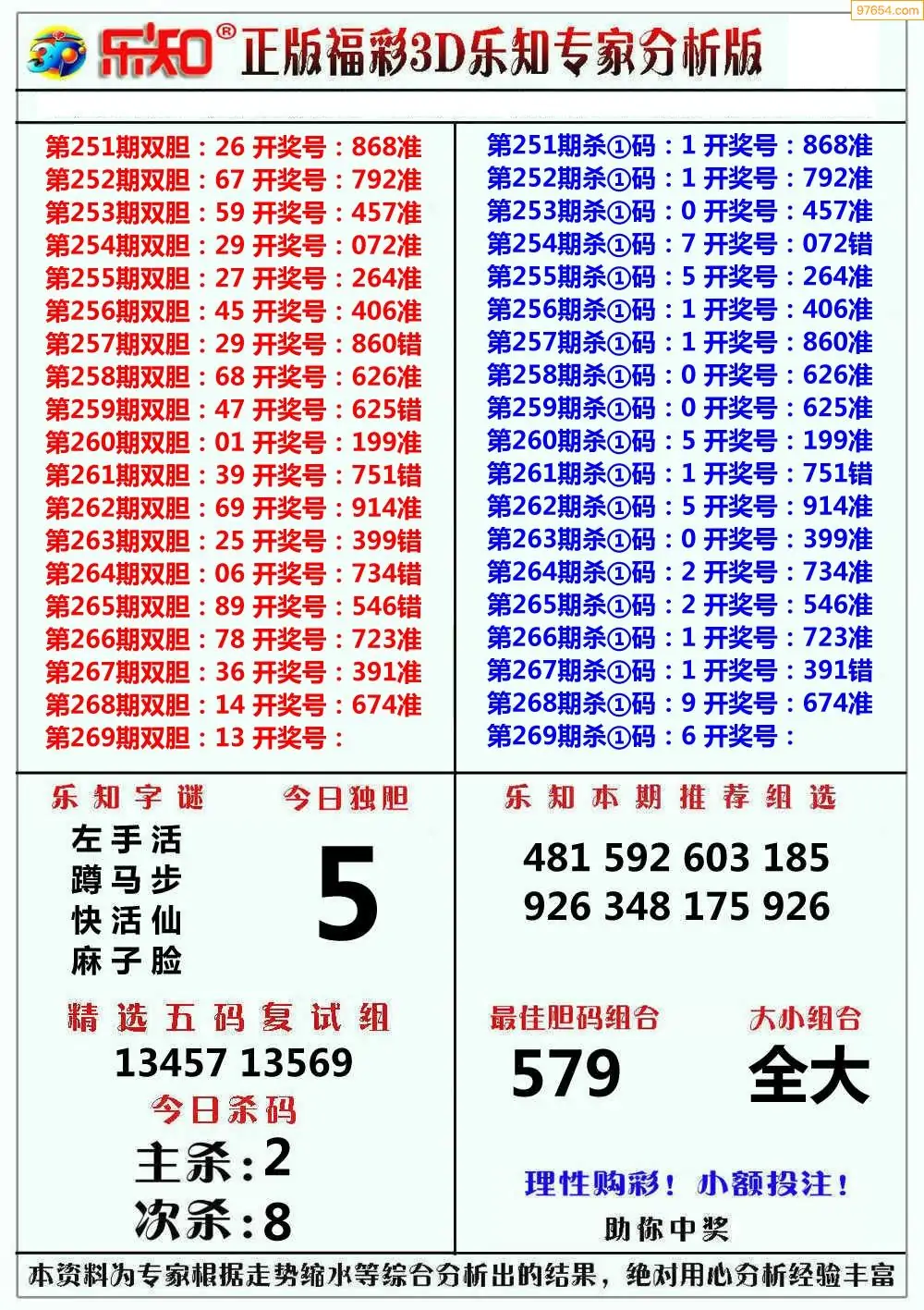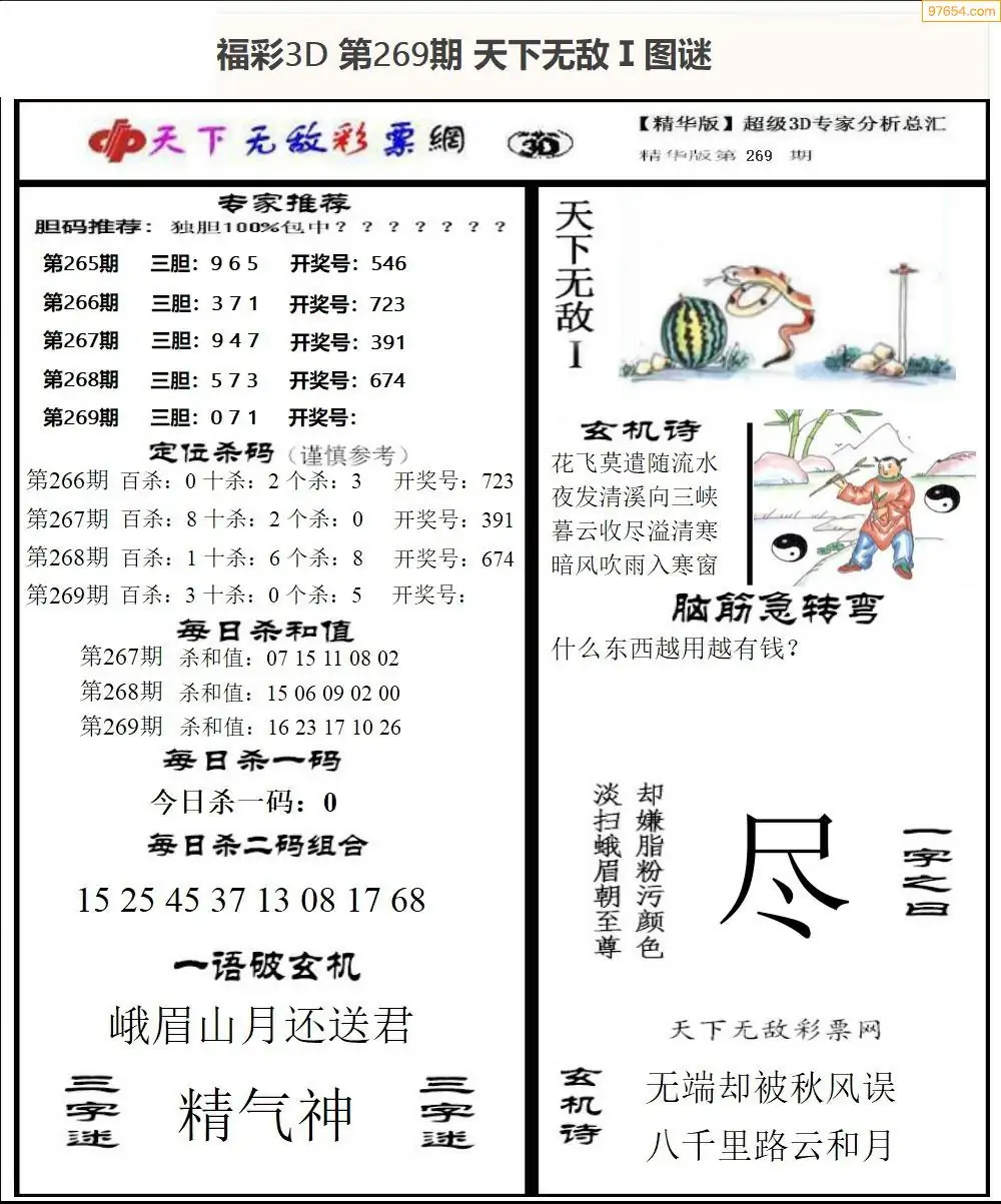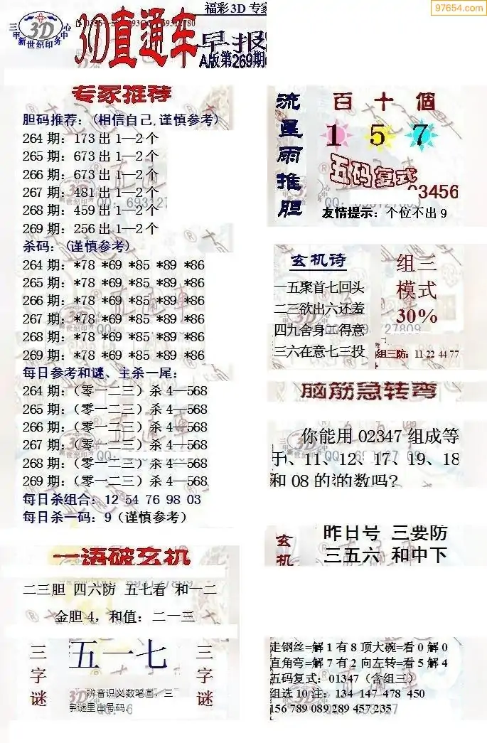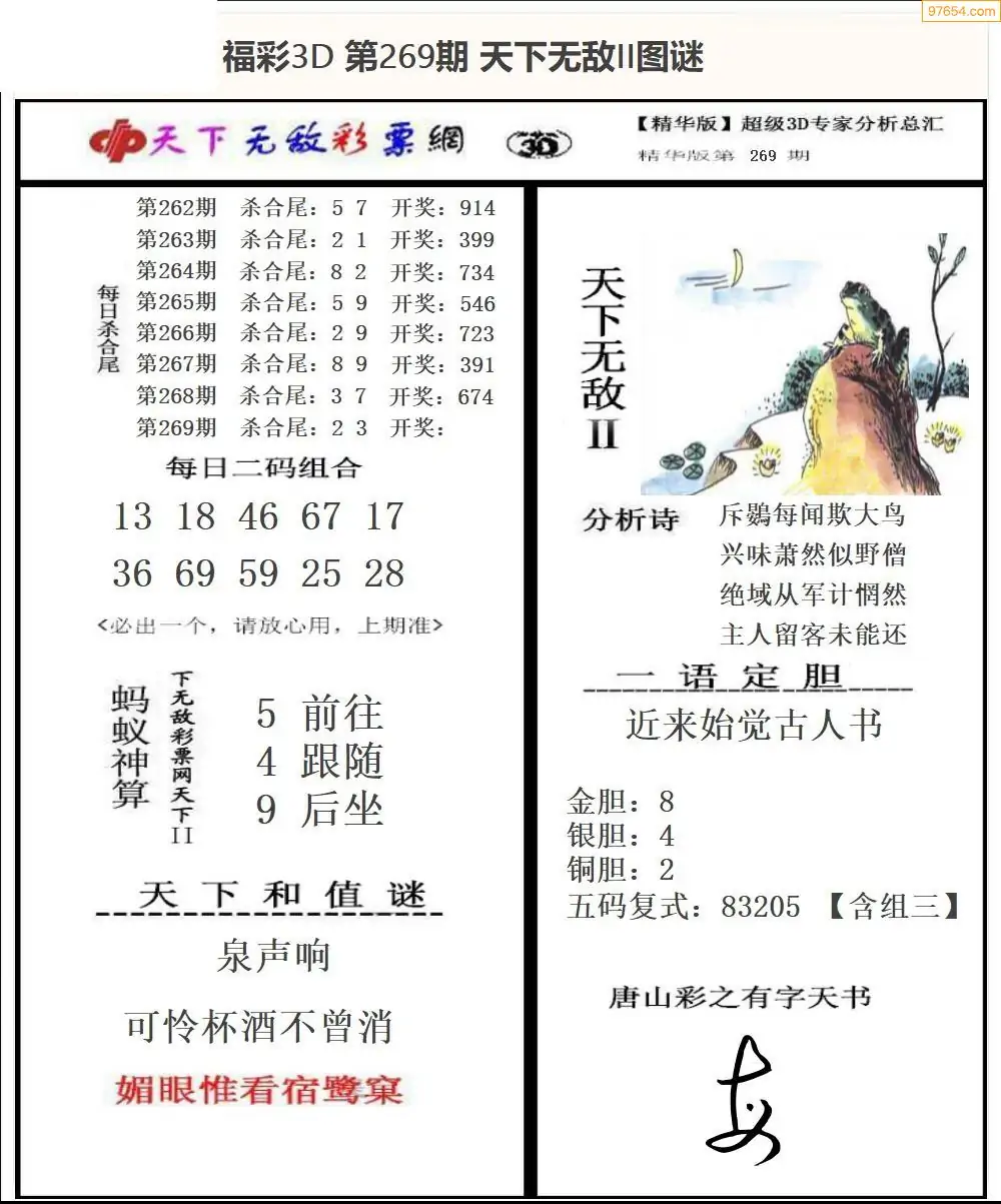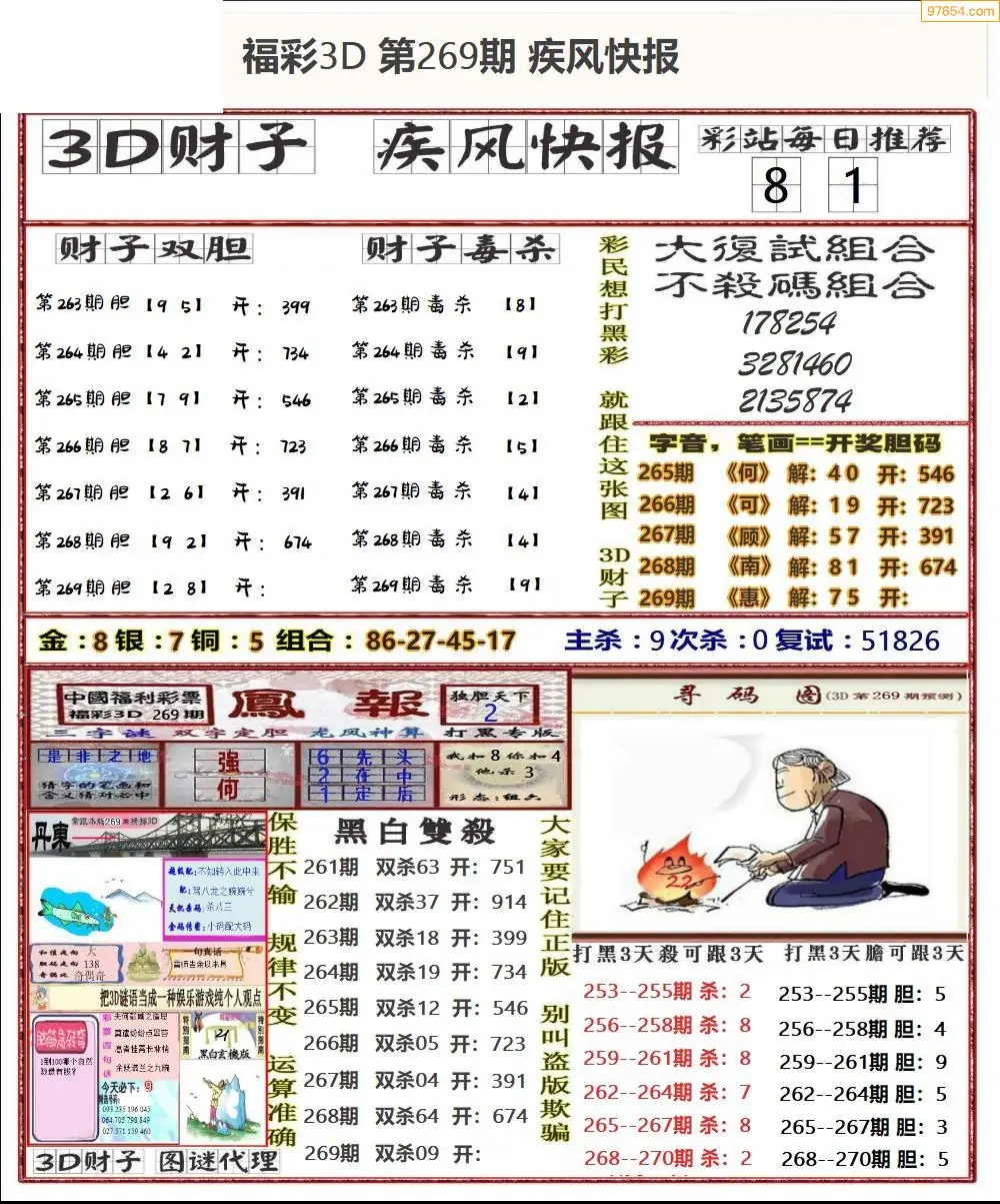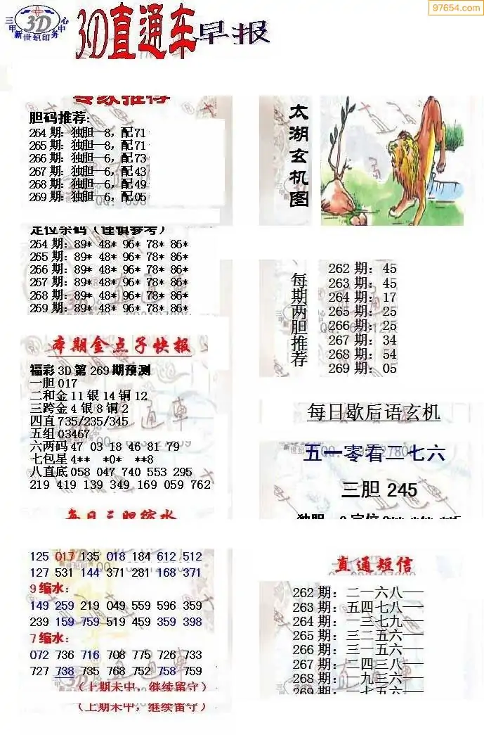 25年269期3d选号彩报图谜画谜