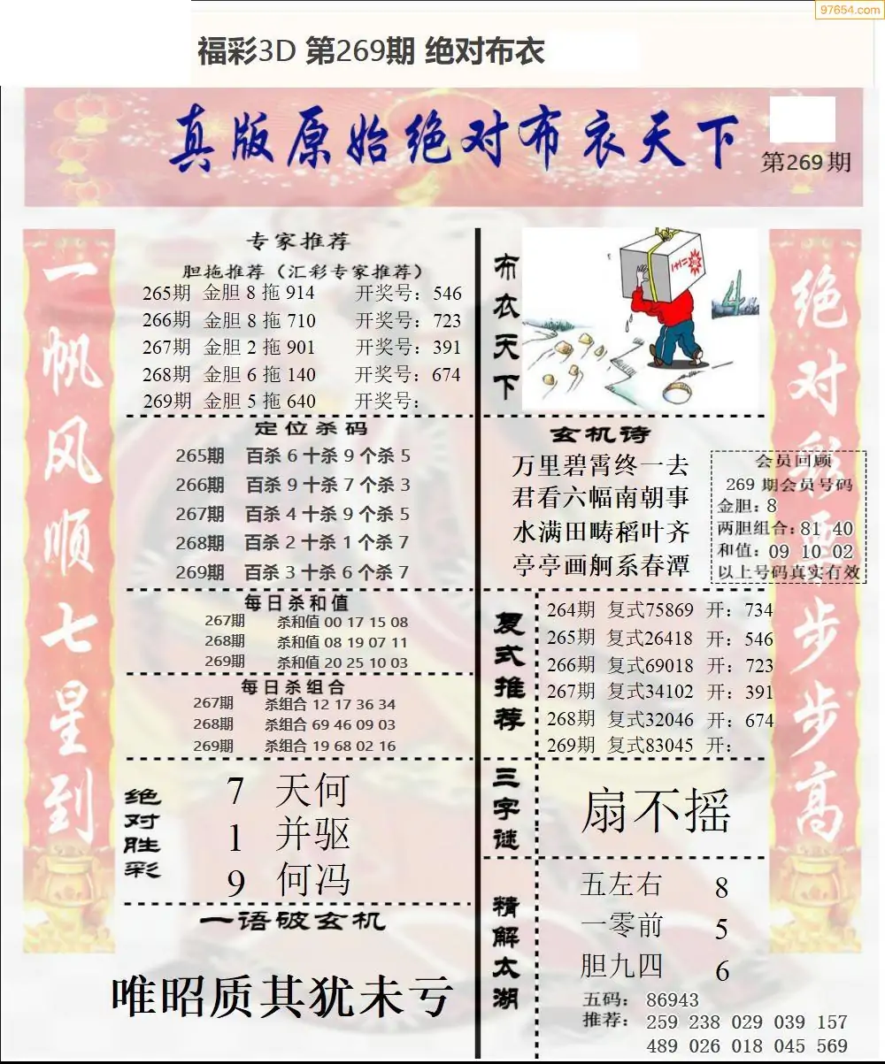 福彩3D269期天牛彩吧套图整合总汇