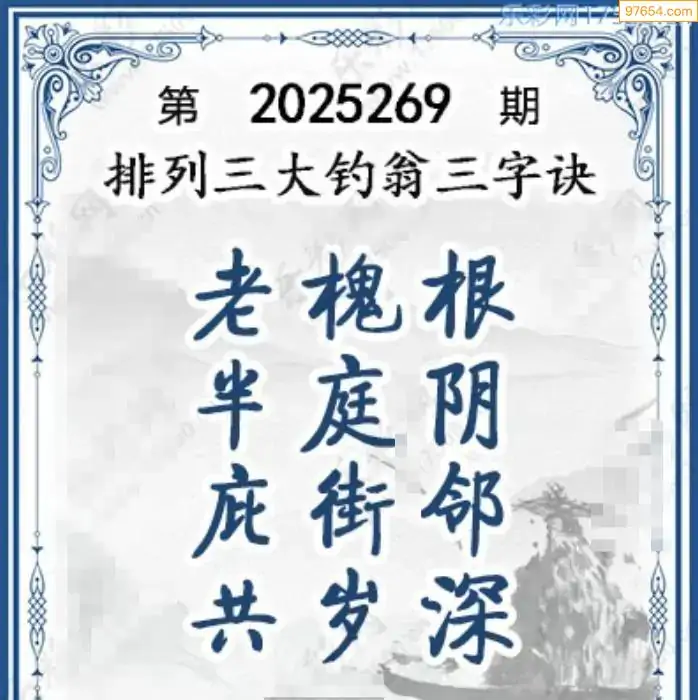25年体彩p3第269期大钓翁三字诀