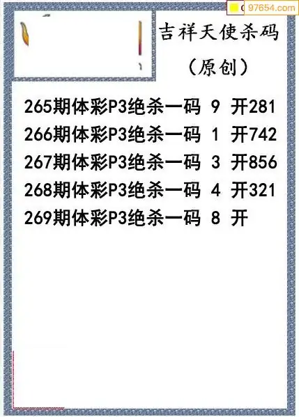 25年269期吉祥天使今日杀码图谜
