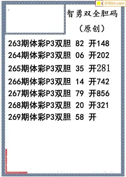 25269期今日P3图迷智勇双全双胆