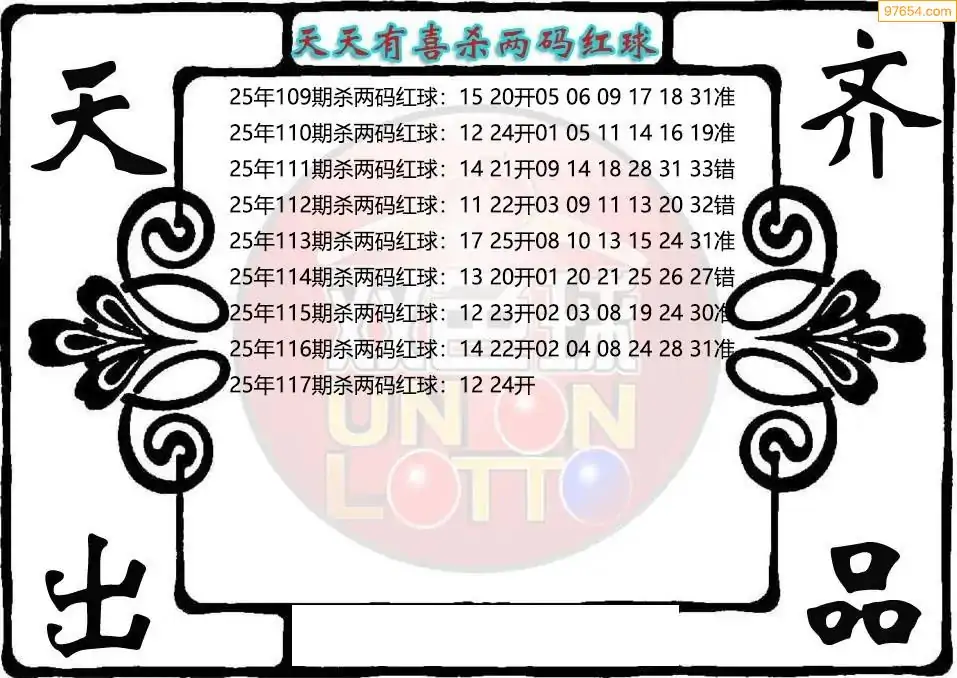 25年双色球117期天天有喜杀红图迷