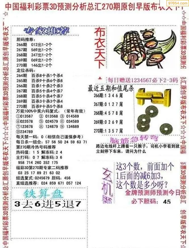 福彩270期3d真精华布衣+布衣早报(转载)
